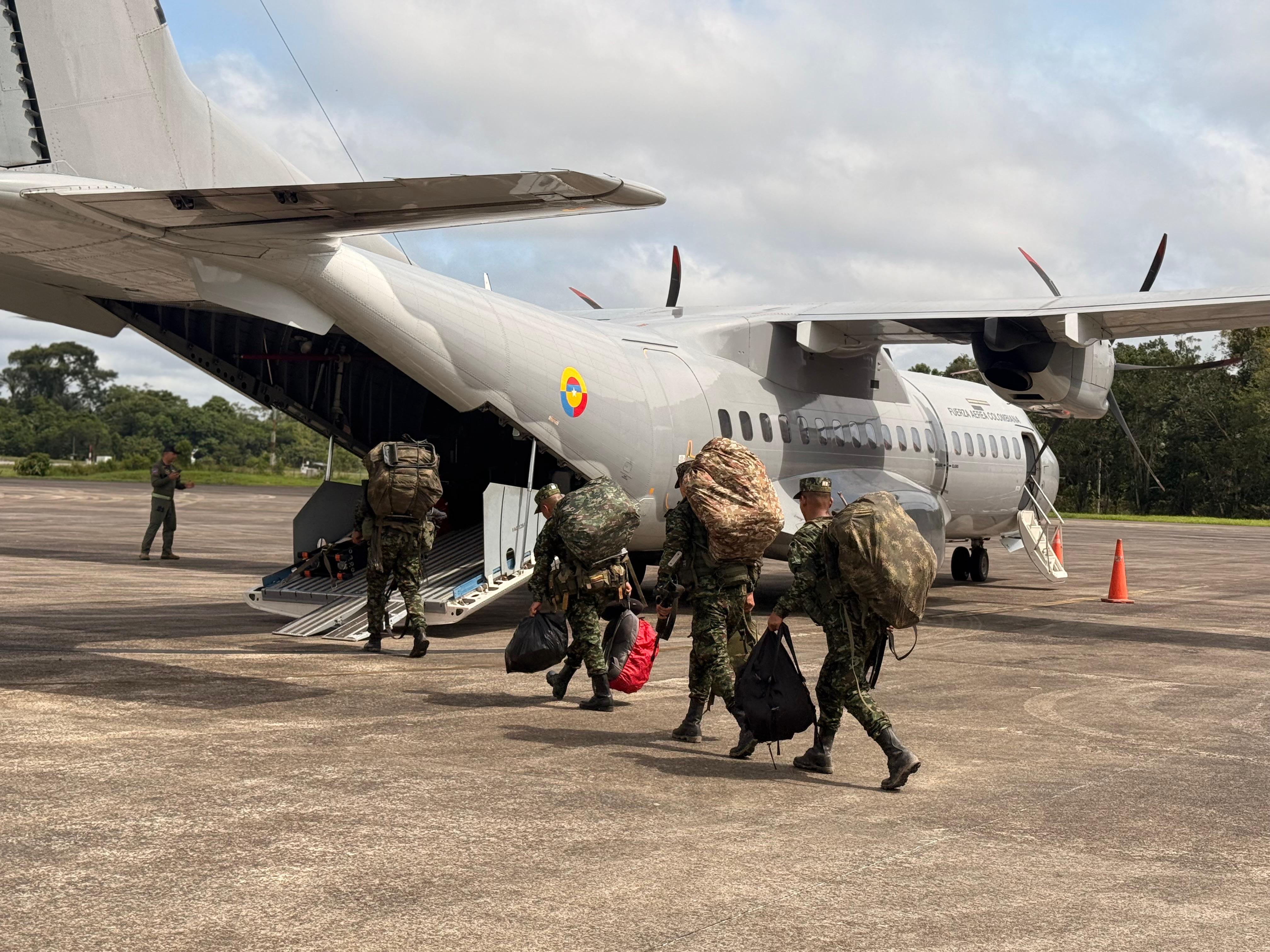 Gracias al empleo del poder aéreo, la FAC ha facilitado el transporte oportuno de soldados, infantes de marina y policías hacia las comunidades de difícil acceso, fortaleciendo así el despliegue logístico necesario hacia las áreas no municipalizadas del departamento. Para el cumplimiento de esta misión se han dispuesto aeronaves de transporte pesado y medianas como el C-40 y C-295.