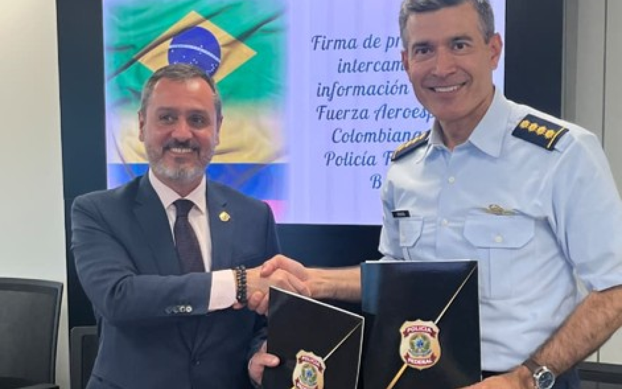 Con el propósito de fortalecer la cooperación bilateral con la República Federativa de Brasil en la implementación de estrategias contra el crimen transnacional, se suscribió un protocolo de intercambio de información entre la Fuerza Aeroespacial Colombiana y la Policía Federal de Brasil. Este instrumento se constituye en una herramienta clave para establecer canales seguros de comunicación que permitan compartir información oportuna y veraz, consolidando resultados más allá de las fronteras frente al crimen organizado transnacional.