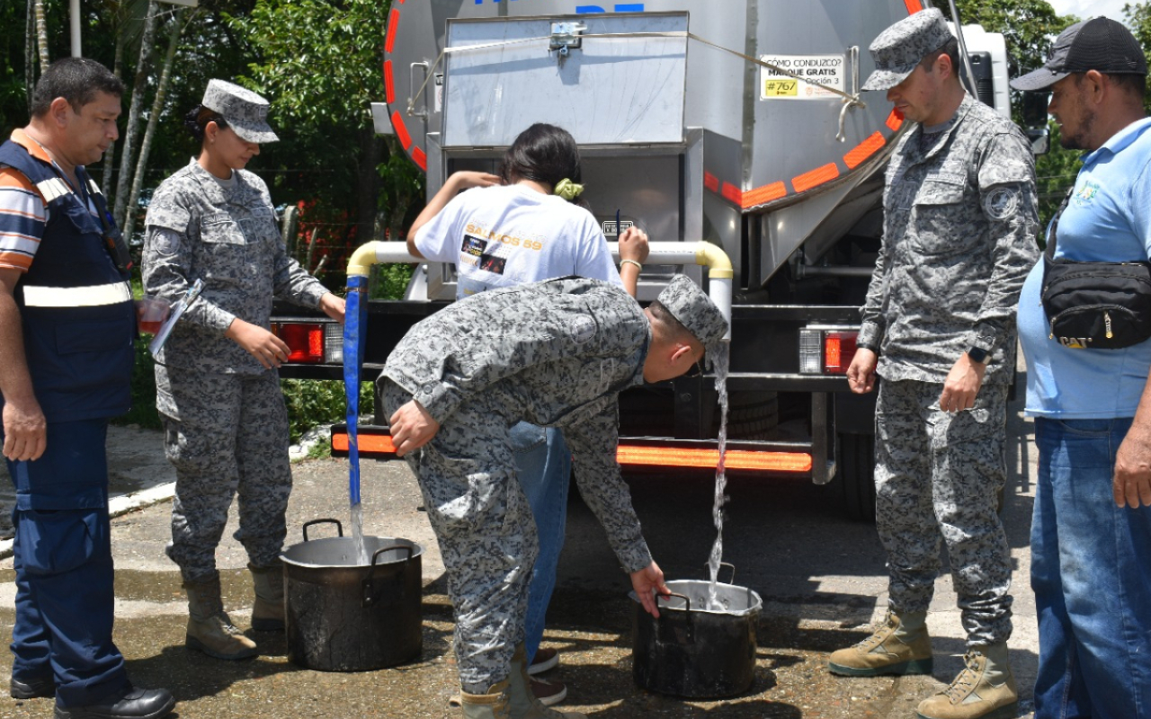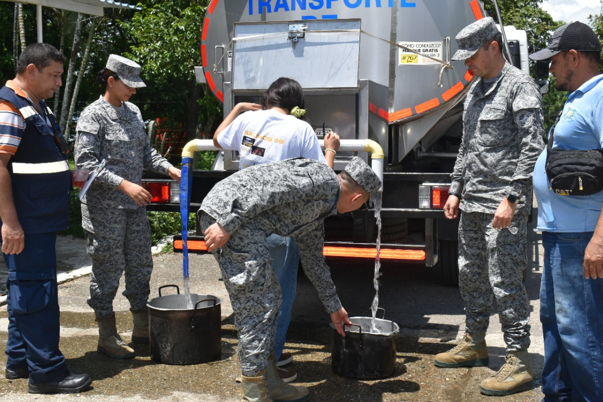 Como parte de este acompañamiento, el Comando Aéreo de Combate No.1, transportó 7.800 galones de agua desde la estación de bomberos hasta los barrios Divino Niño, La Esperanza, La Consolata, Villa Luz, Villa Ángela, Tres Esquinas y Seis de Enero, permitiendo que cientos de familias se reabastezcan del líquido vital, mientras avanzan los trabajos de reparación.