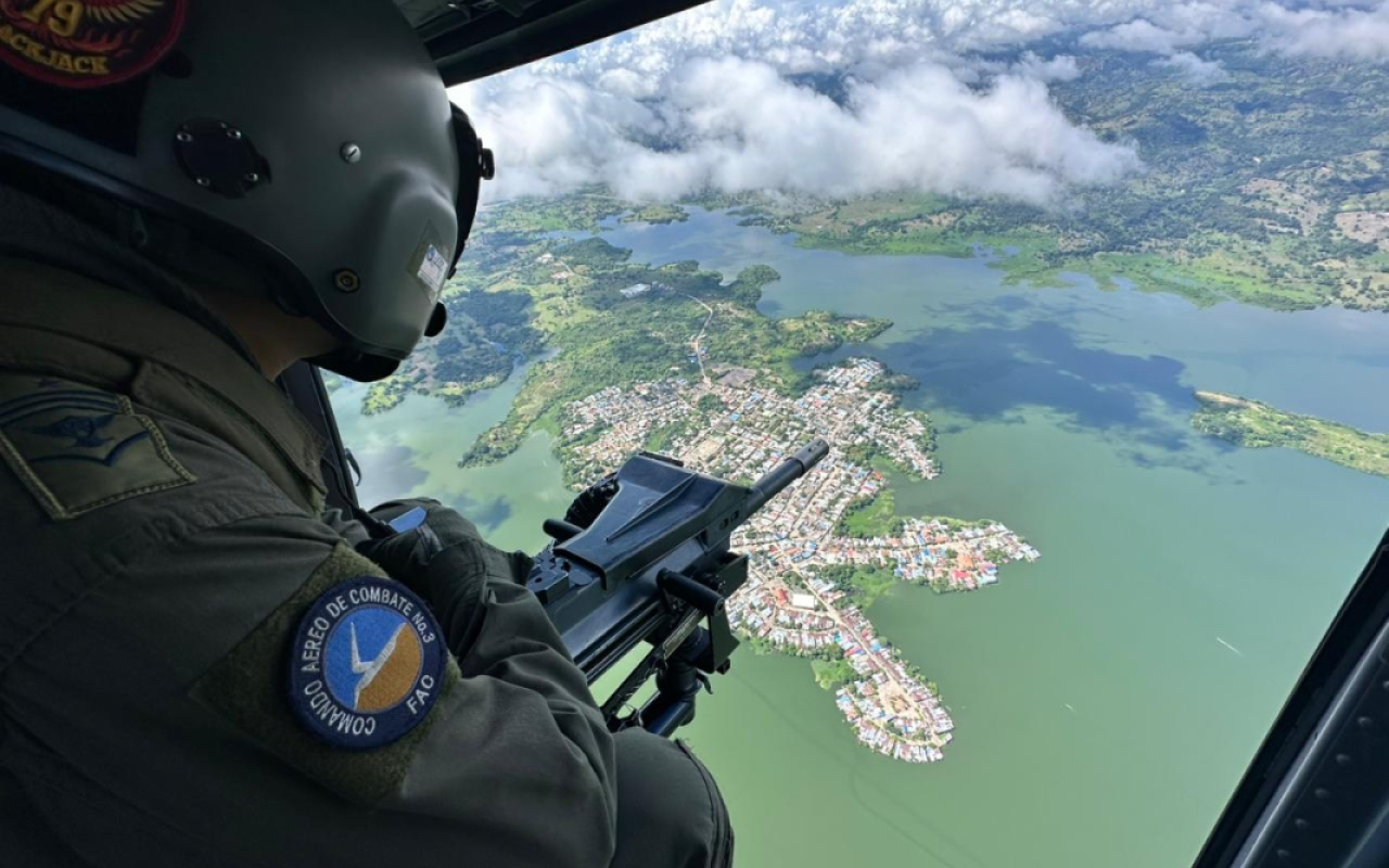 Este despliegue aéreo se realizó en una aeronave Bell 212 del Comando Aéreo de Combate No. 3, que por medio de estas herramientas buscan incentivar a la comunidad a denunciar actos delictivos a las autoridades competentes.