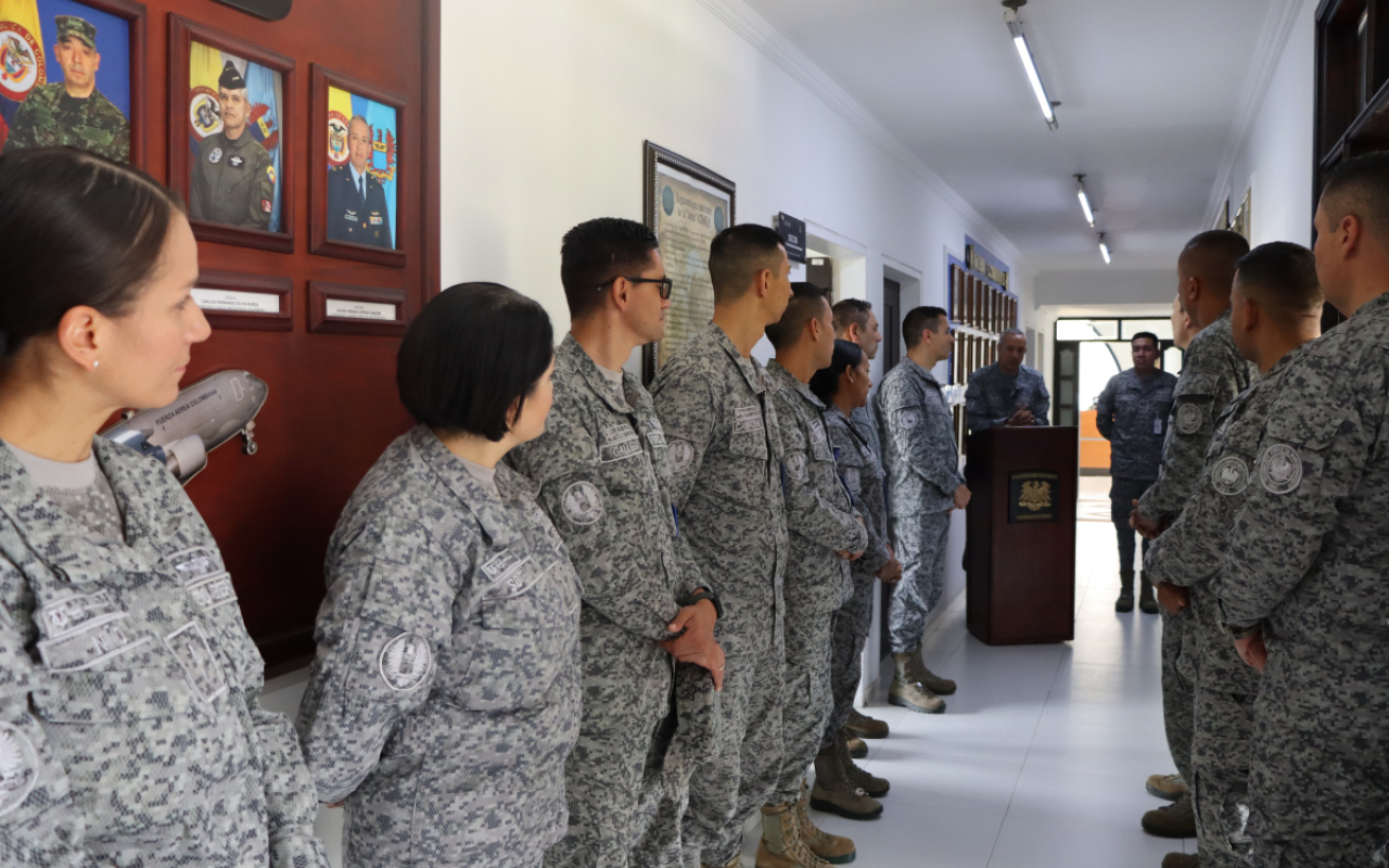 La ceremonia se desarrolló en las instalaciones del Comando Aéreo de Mantenimiento, donde el señor Coronel Javier Hernán Jiménez Garzón expresó su profundo agradecimiento a todo el personal que lo acompañó durante su gestión. En sus palabras, exaltó el compromiso, la dedicación y el profesionalismo de Oficiales, Suboficiales y Civiles, destacando el trabajo articulado de un equipo que, bajo su liderazgo, permitió cumplir la misión con excelencia y dejar en alto el nombre de la Institución.
