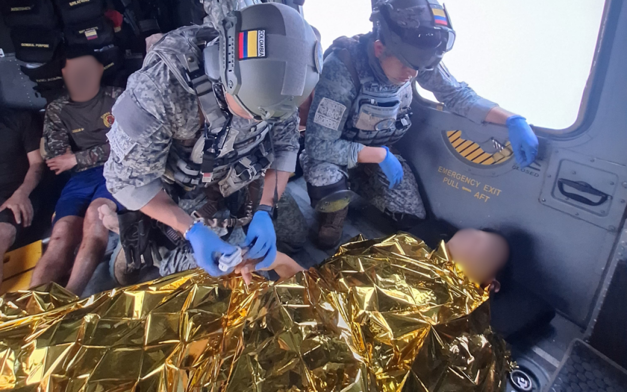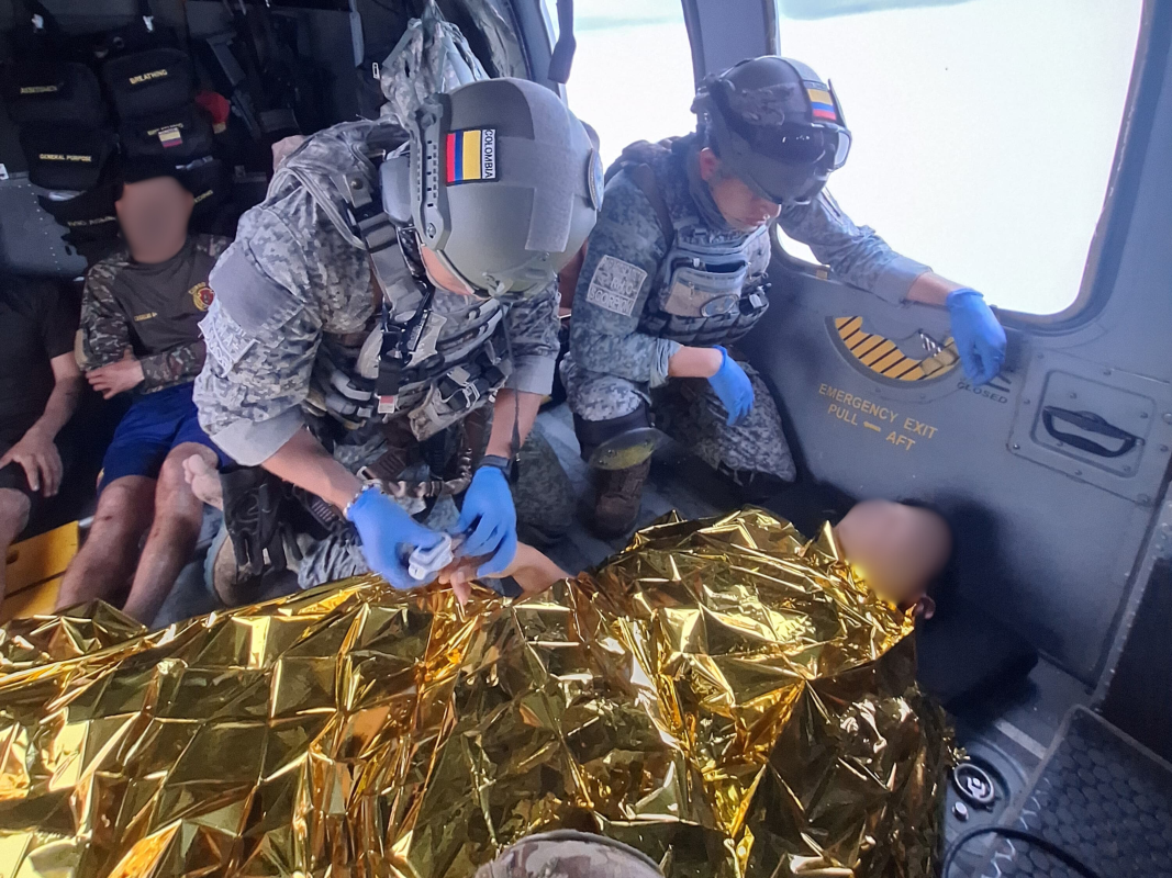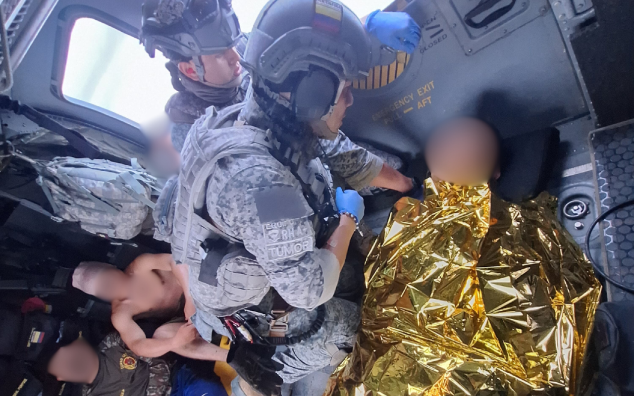 Debido a la condición médica de uno de los uniformados, fue necesario efectuar un traslado adicional a bordo de una aeronave King 350, del Comando Aéreo de Transporte Militar, CATAM, que lo evacuó hasta la ciudad de Bogotá, donde continúa recibiendo atención médica especializada en el Hospital Militar.