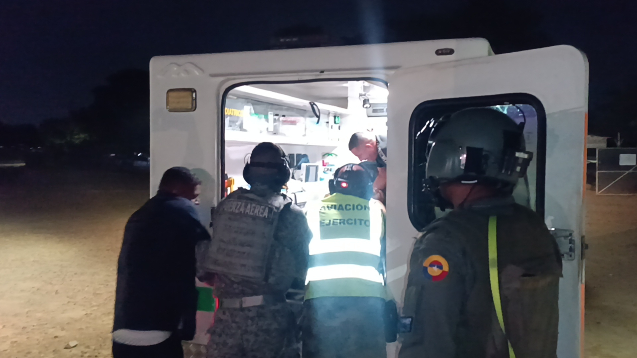Los heridos fueron evacuados por vía aérea en un helicóptero UH-60 Ángel de la FAC, desde la base militar del corregimiento de Orú hasta la Trigésima Brigada del Ejército Nacional, BR 30, donde fueron atendidos de manera inmediata, garantizando su derecho a la vida y recibiendo primeros auxilios oportunos. Posteriormente, fueron trasladados en ambulancia a un centro hospitalario en la ciudad de Cúcuta, donde recibieron atención médica especializada.