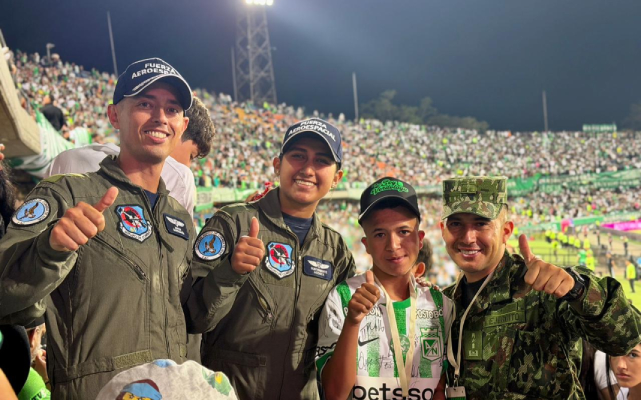 El traslado aéreo de un niño con una condición médica especial, realizado en un helicóptero UH-60 de la Fuerza Aeroespacial Colombiana, desde el municipio de Ituango hasta la ciudad de Medellín, permitió facilitar su atención médica oportuna y, al mismo tiempo, hacer realidad uno de sus mayores sueños: Conocer a su equipo de fútbol favorito, el Atlético Nacional, en el Estadio Atanasio Girardot.