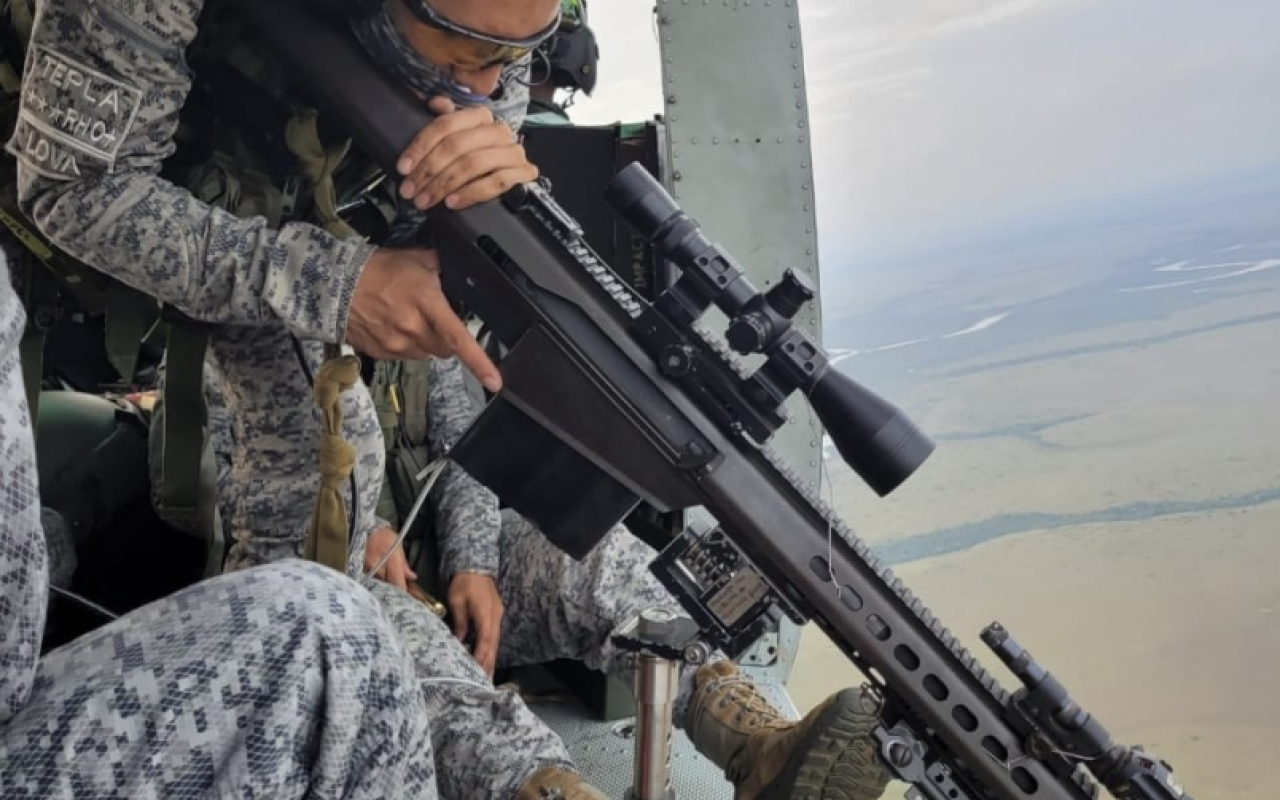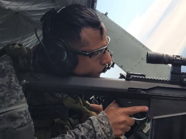 Posteriormente, en la fase de vuelo se realizan ejercicios de polígono en horario diurno y nocturno, en condiciones de uso de lentes de visión nocturna (NVG), con el fin de fortalecer las capacidades para operar en distintos ambientes y garantizar la precisión en el empleo de los sistemas de armas desde plataformas aéreas.