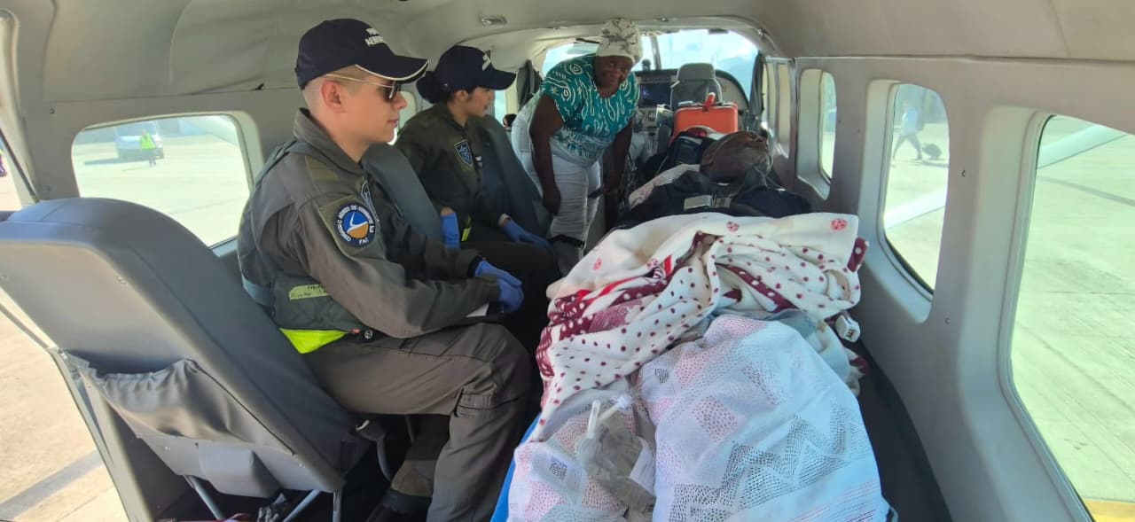 Ante la necesidad de atención médica, el traslado fue efectuado en una aeronave medicalizada Cessna 208 Caravan del Grupo Aéreo del Caribe, en trabajo articulado con el Centro Nacional de Recuperación de Personal -CENRP.