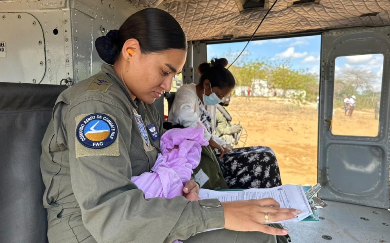 Durante el vuelo, el personal médico militar mantuvo monitoreo constante de los signos vitales y le brindó soporte permanente, logrando la estabilidad de la paciente hasta su llegada a Riohacha.