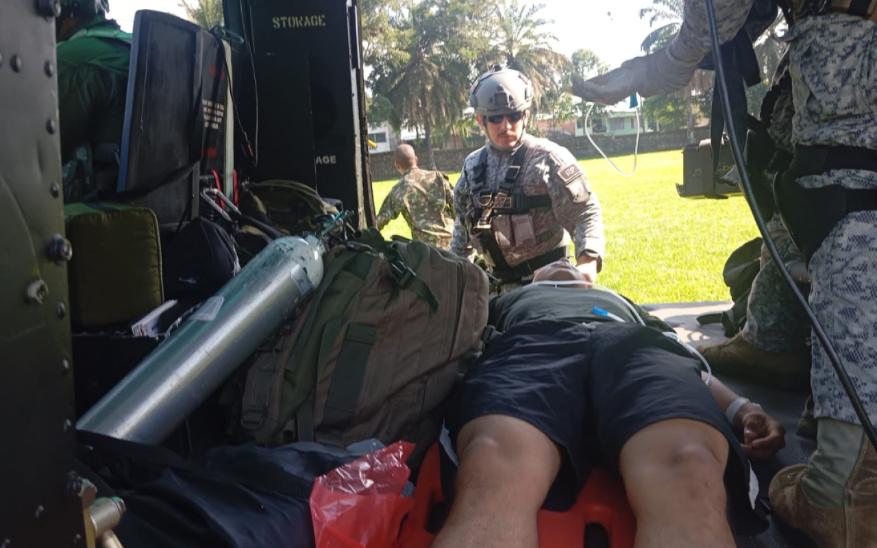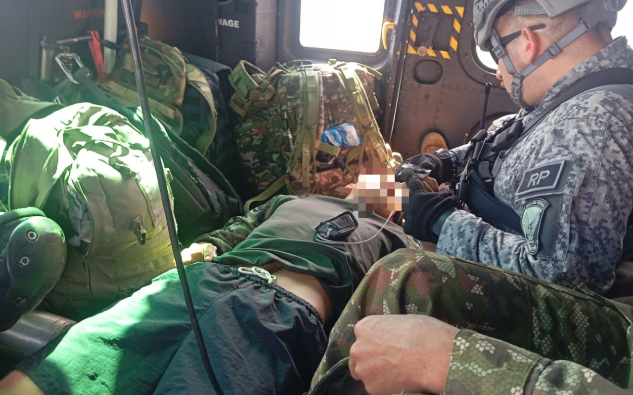 Durante el desplazamiento aéreo hacia la ciudad de Florencia, el equipo a bordo aplicó los protocolos establecidos, brindando soporte vital básico, hasta que los uniformados fueron puestos a disposición del personal de salud de la Décima Segunda Brigada del Ejército Nacional, para recibir atención médica especializada, oportuna e integral.