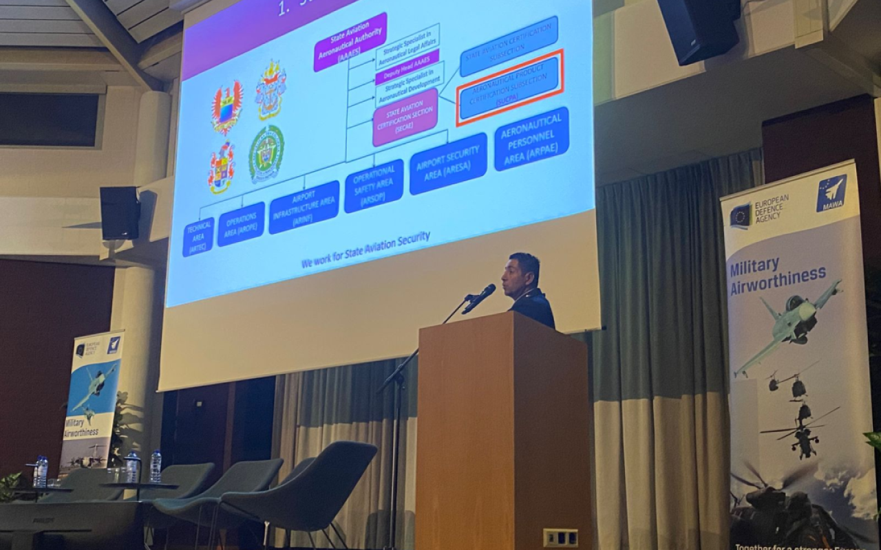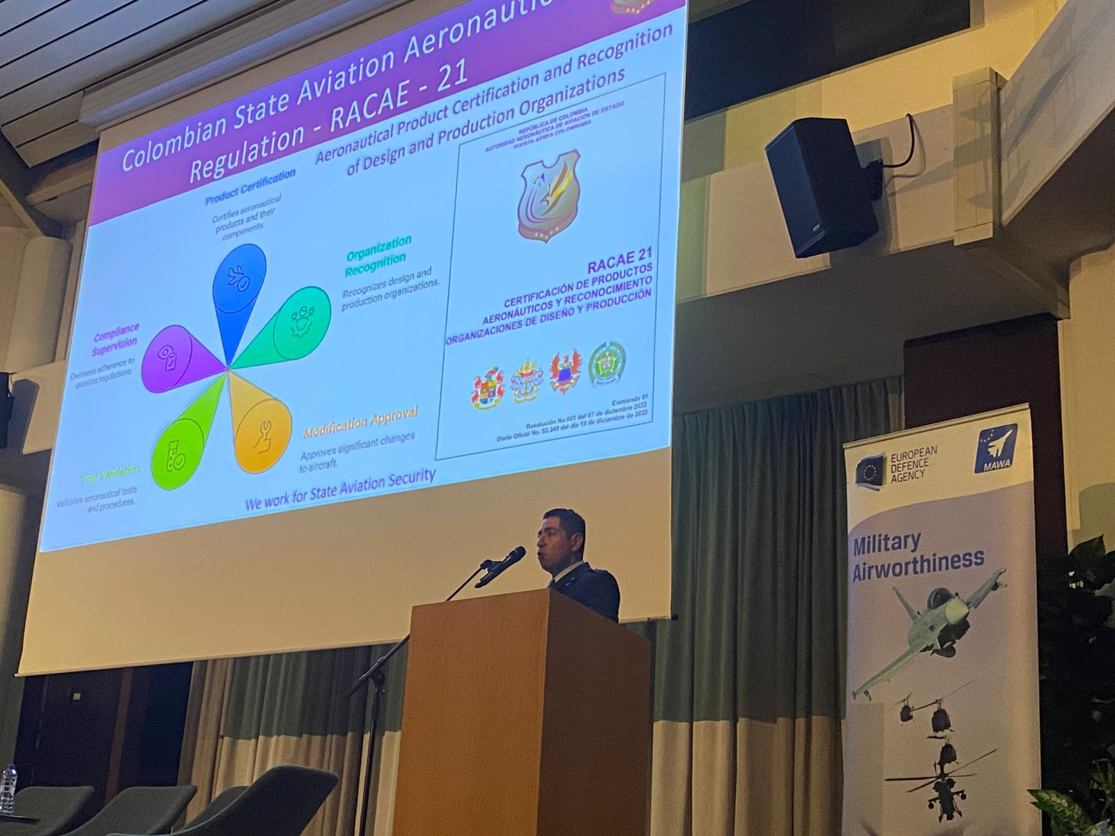 La AAAES, representada por el señor Mayor Mauricio López Gómez, Especialista Estratégico de Fomento Aeronáutico, participó en el panel sobre aplicación global de estándares de aeronavegabilidad fuera del marco europeo, junto con delegaciones de Australia, India, Canadá y Emiratos Árabes Unidos, exponiendo experiencias, retos y estrategias para la armonización de los EMAR con los marcos regulatorios nacionales. Durante su intervención, se destacó el modelo colombiano que integra áreas complementarias como infraestructura, personal y gobernanza, promoviendo la aeronavegabilidad como una capacidad estratégica nacional.