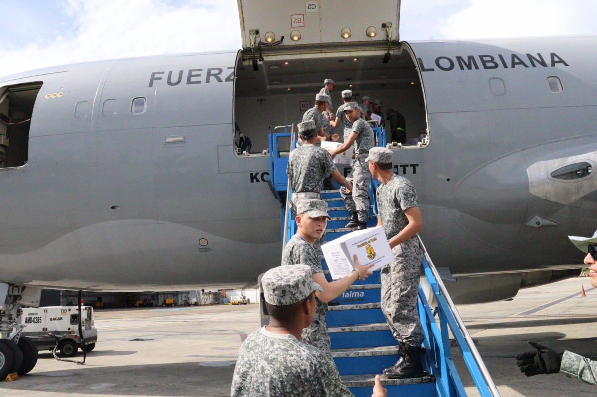 Como medida preventiva, ante la aproximación de la Tormenta Tropical Melissa por aguas del Caribe, en una aeronave Boeing 767 del Comando Aéreo de Transporte Militar, CATAM, fueron transportadas 22 toneladas de ayuda humanitaria desde Bogotá hasta San Andrés, dispuestas por la Unidad Nacional para la Gestión del Riesgo de Desastres, UNGRD.