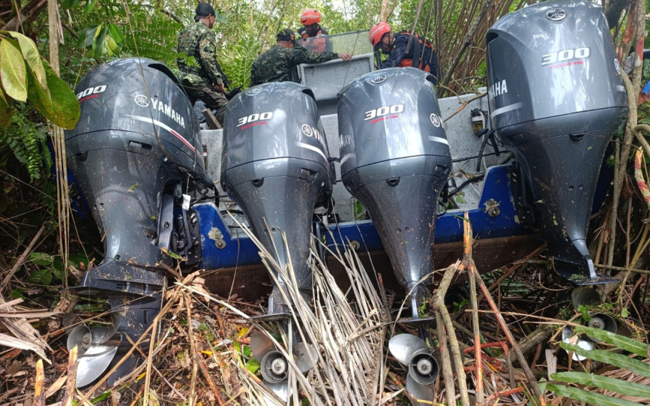 La lancha tipo Go Fast, equipada con cuatro motores fuera de borda de 300 caballos de potencia y capacidad para transportar cerca de cinco toneladas de alcaloides, fue hallada abandonada en un estero del Golfo de Urabá, en el departamento de Antioquia. La motonave era capaz de alcanzar velocidades de hasta 45 nudos.