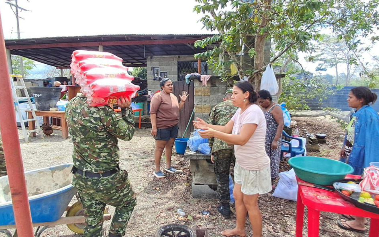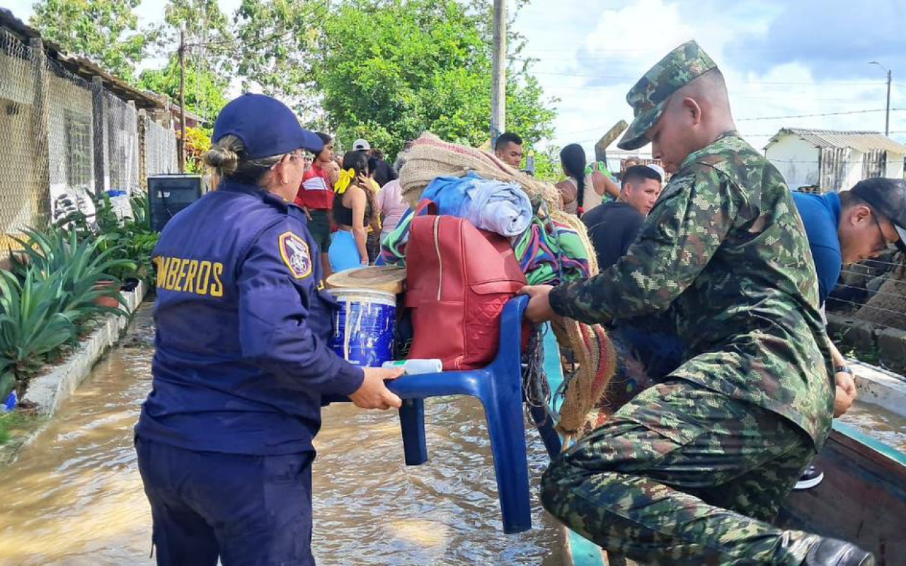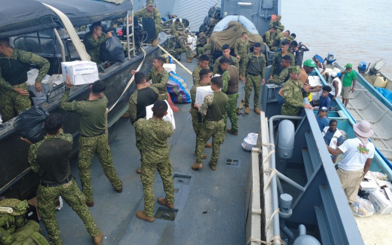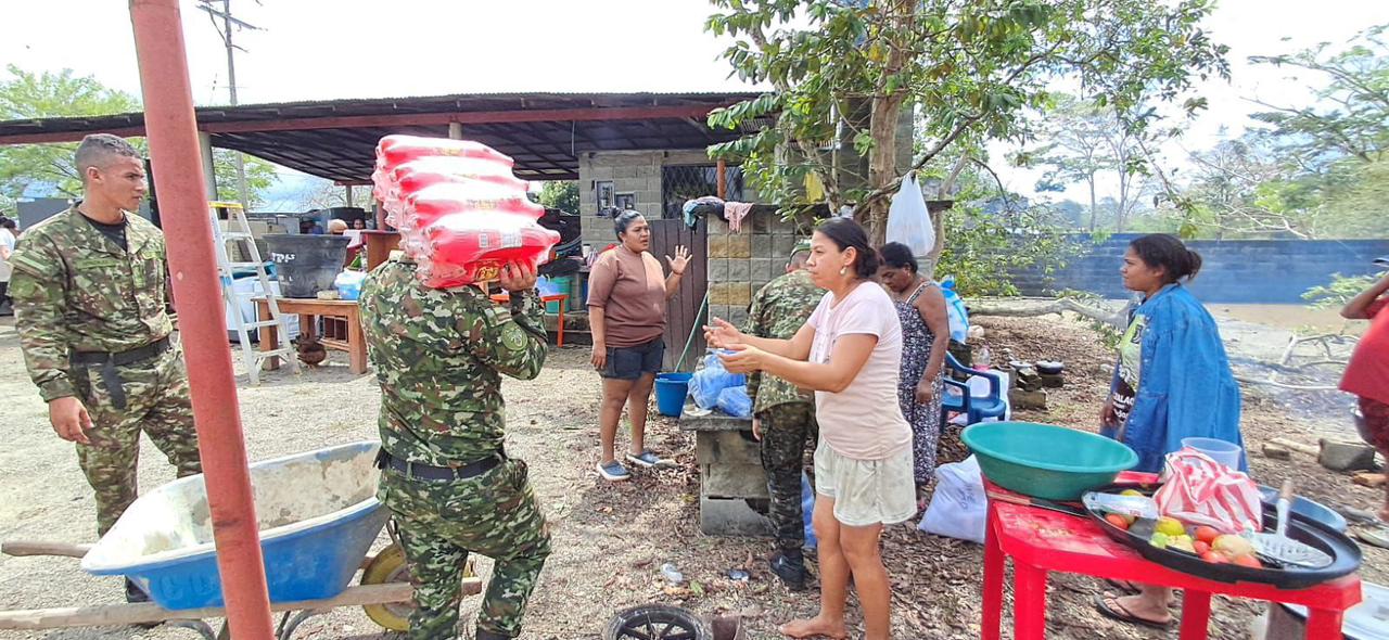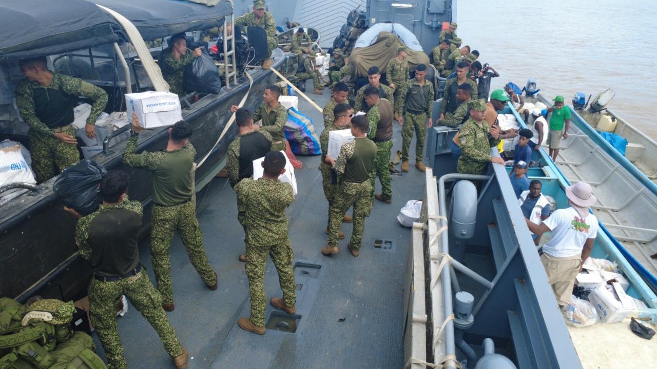 En articulación con la Defensa Civil y las autoridades departamentales, las Fuerzas Militares han fortalecido el apoyo humanitario mediante la evacuación de personas en condición de vulnerabilidad y la entrega de más de 80 toneladas de asistencias humanitarias, además de kits de alimentación y aseo, destinados a las familias damnificadas por las inundaciones.