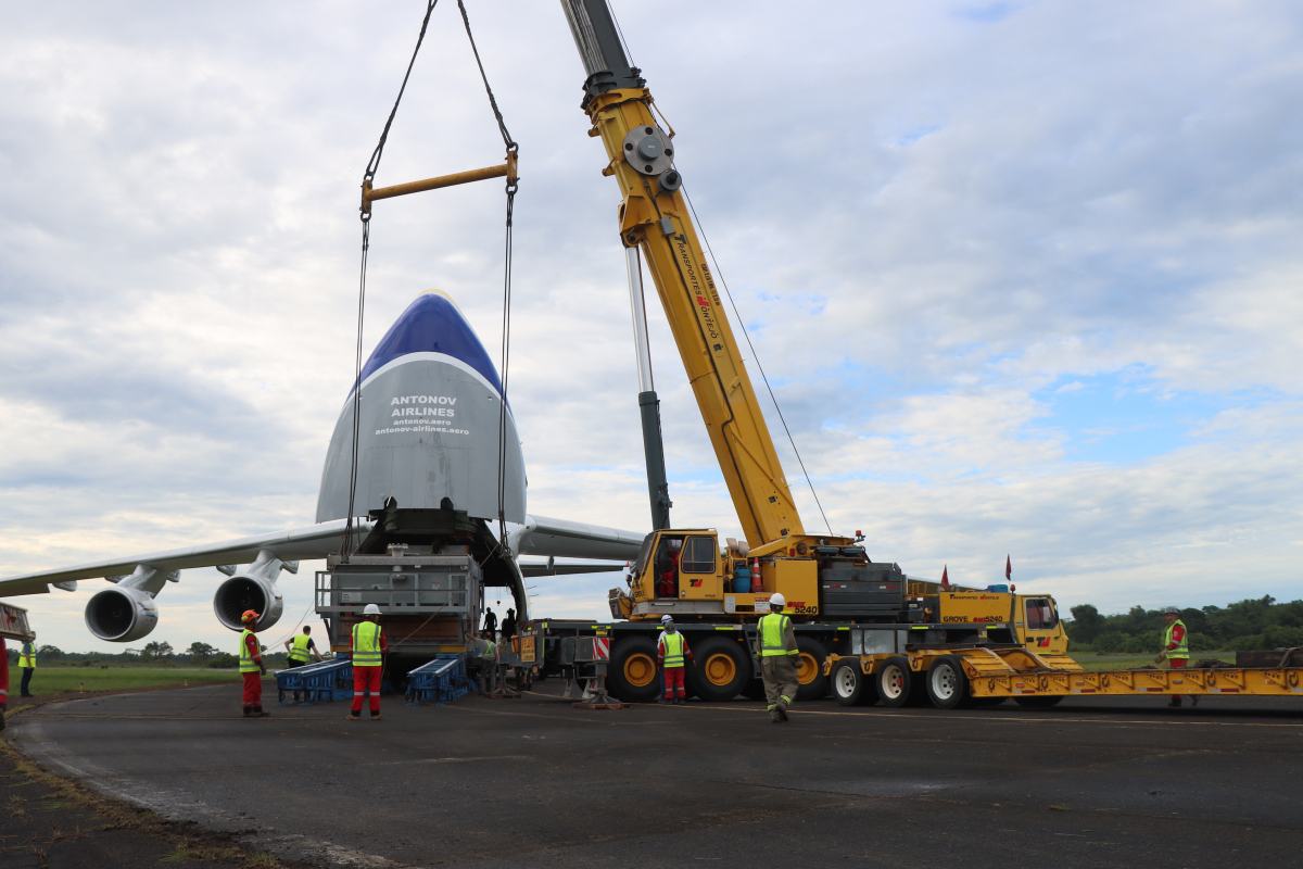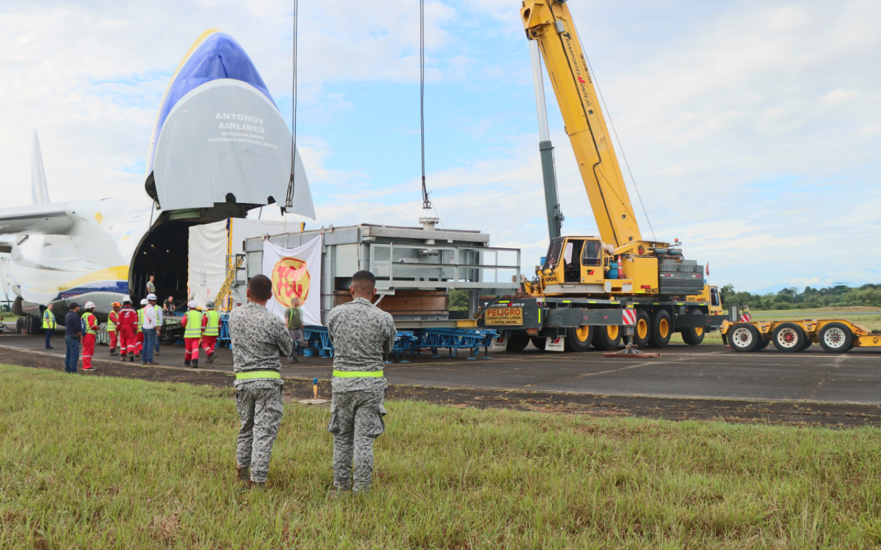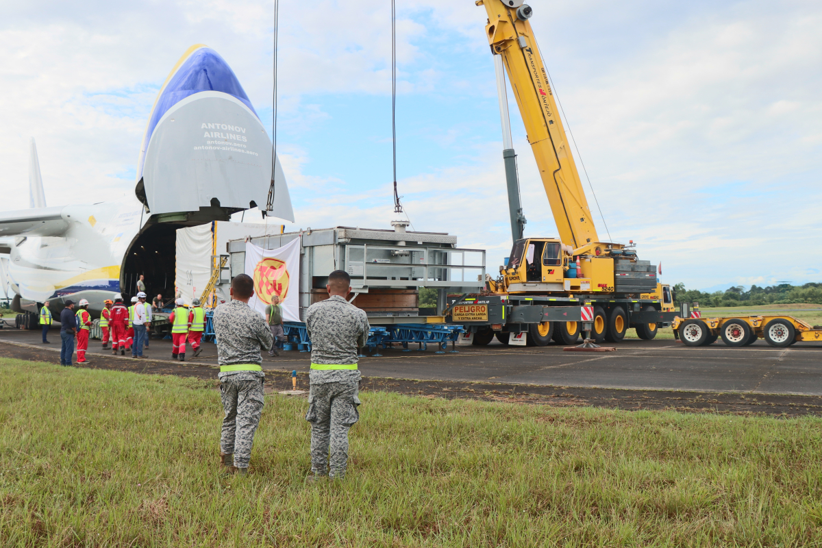 Con todas las capacidades operativas, el soporte logístico y la infraestructura aeronáutica de la Fuerza Aeroespacial Colombiana, el Antonov An-124 Ruslan, actualmente el avión de carga más grande del mundo, aterrizó en la pista del Comando Aéreo de Combate No. 2, CACOM 2, transportando equipos de gran importancia para el desarrollo de proyectos energéticos en los llanos orientales.