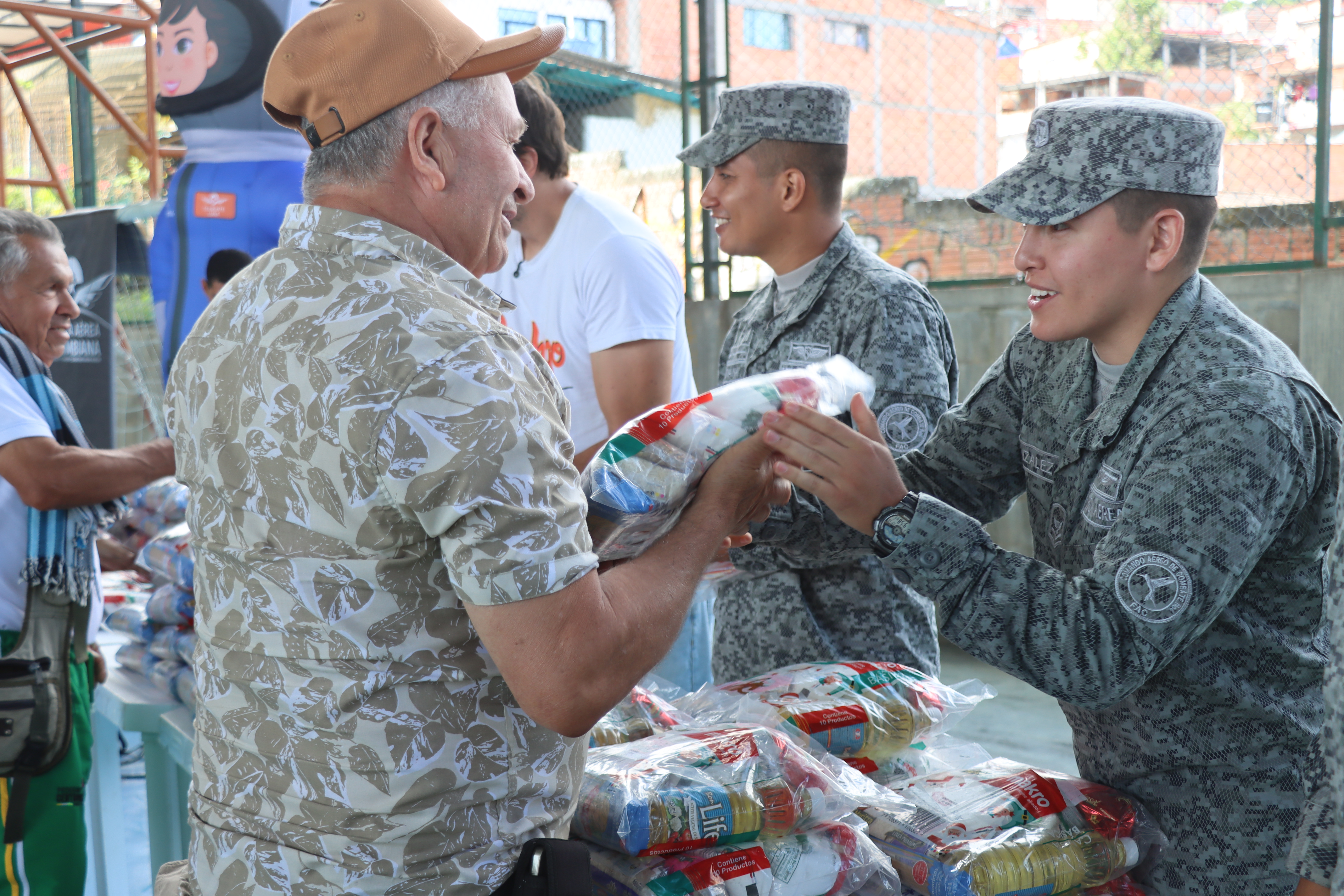 La jornada se cumplió en dos fases, en la primera, tras un desplazamiento terrestre de aproximadamente 23 kilómetros, se realizó la entrega de 150 mercados a adultos mayores provenientes de distintos sectores rurales del municipio de Icononzo, en un espacio que promovió el encuentro, la integración y la sana convivencia.