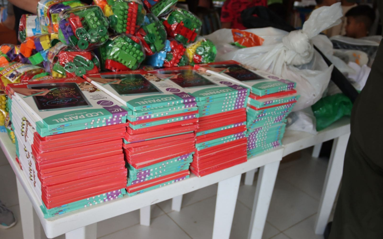 La jornada se llevó a cabo en la ludoteca municipal, donde se beneficiaron cerca de 200 personas pertenecientes a diferentes núcleos familiares, a quienes se les entregaron juguetes, tenis, guayos, camisetas y gorras, como un apoyo que contribuye al bienestar, la integración y el acompañamiento social de la población Solanence.
