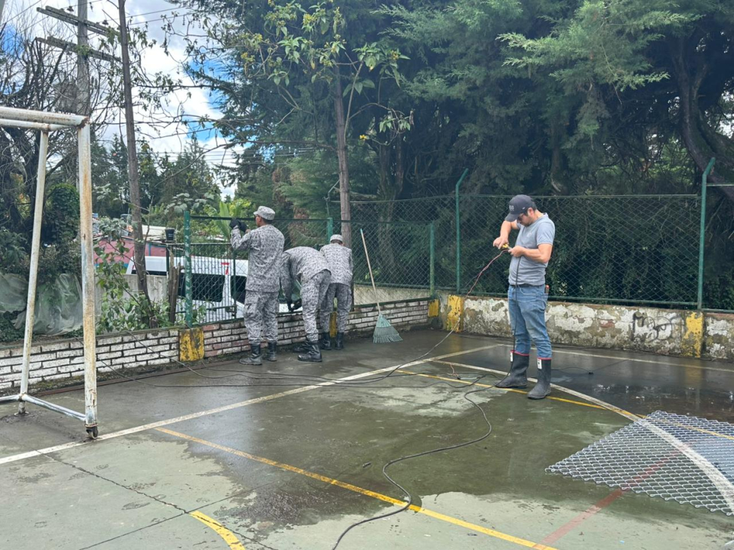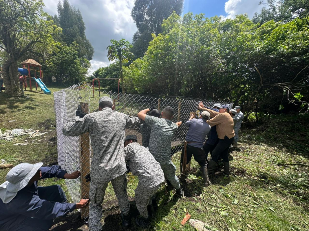 En articulación con la comunidad educativa, se desarrollaron labores de poda, reparación e instalación de la malla perimetral y del pozo séptico, con el propósito de prevenir accidentes y mejorar las condiciones de seguridad para los estudiantes. Estas acciones no solo contribuyen al bienestar y la integridad de los menores, sino que también promueven entornos escolares más seguros y adecuados para el aprendizaje.