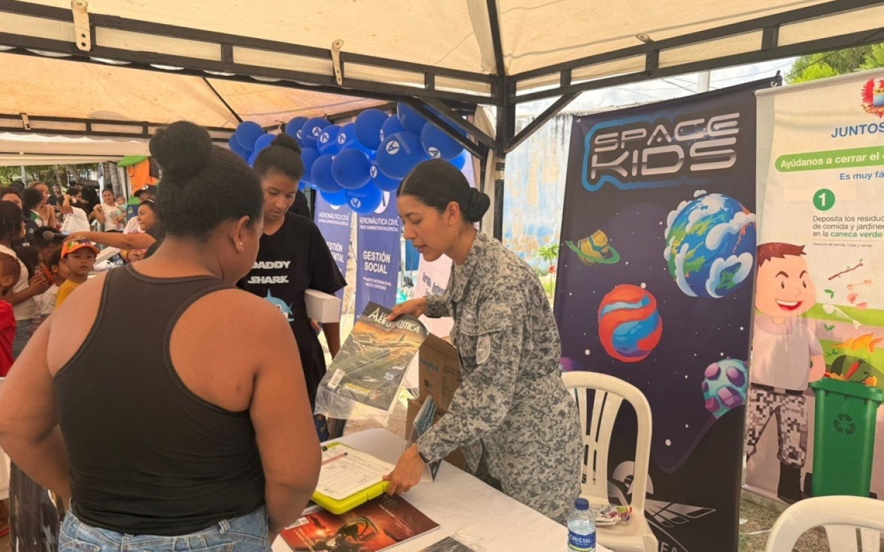 Con una jornada cívica y ambiental la Fuerza Aeroespacial Colombiana junto a la Aeronáutica Civil, realizaron una actividad de acercamiento con la comunidad en el barrio Villa del Río, en el municipio de Soledad, Atlántico.