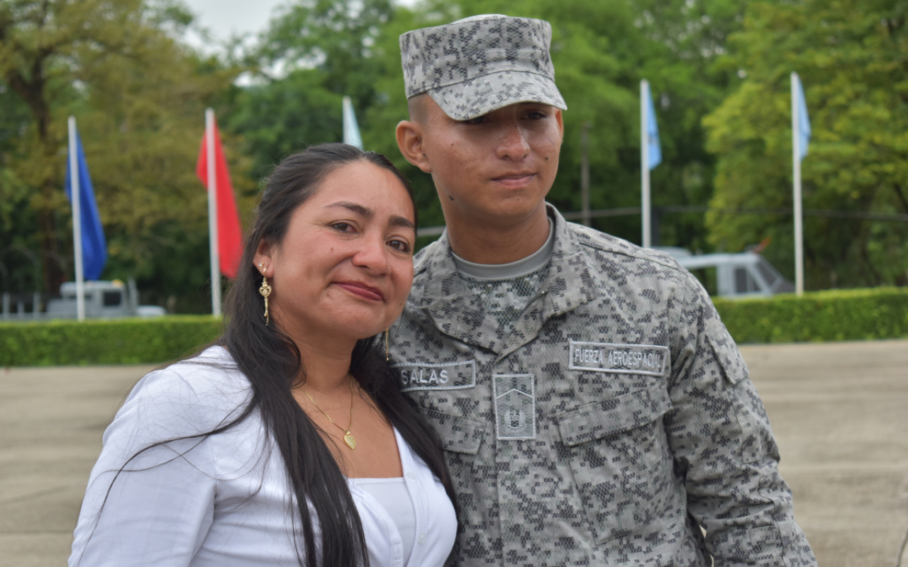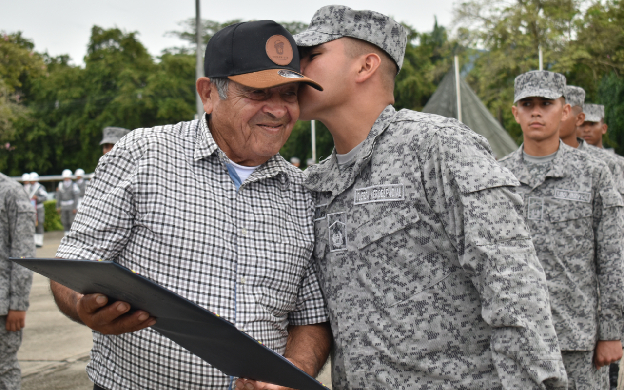 Entre los graduandos se destacó el Soldado Profesional Luis Miguel Luna, de 22 años, oriundo del municipio de Dibulla, en La Guajira, quien obtuvo el primer puesto del curso. Hijo de una familia trabajadora y humilde, encontró en la disciplina militar el camino para transformar su vida; tras un año de servicio en el Ejército Nacional, cumplió el sueño de ingresar a la Fuerza Aeroespacial Colombiana y como padre de la pequeña Adhara, de tan solo un año, su historia simboliza la esperanza, resiliencia y el esfuerzo de quienes luchan por construir un mejor futuro.