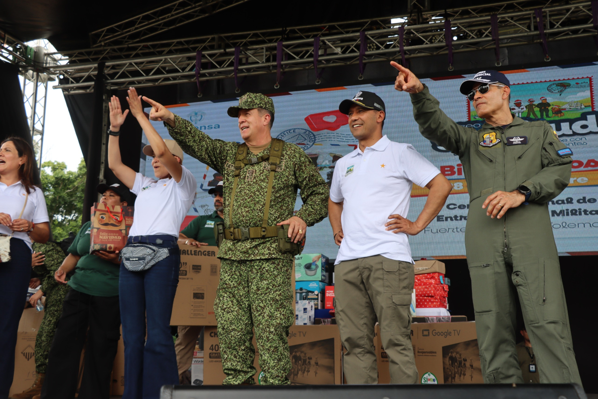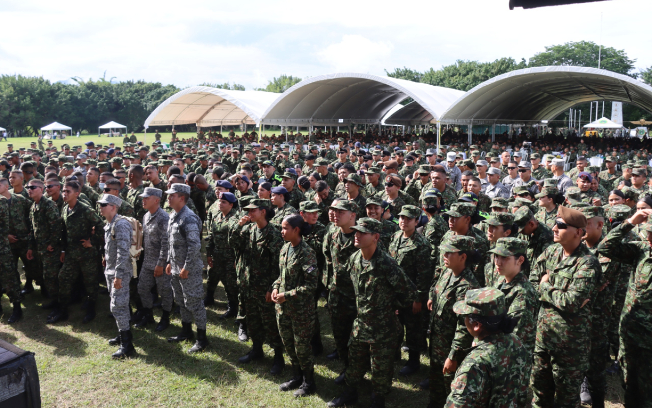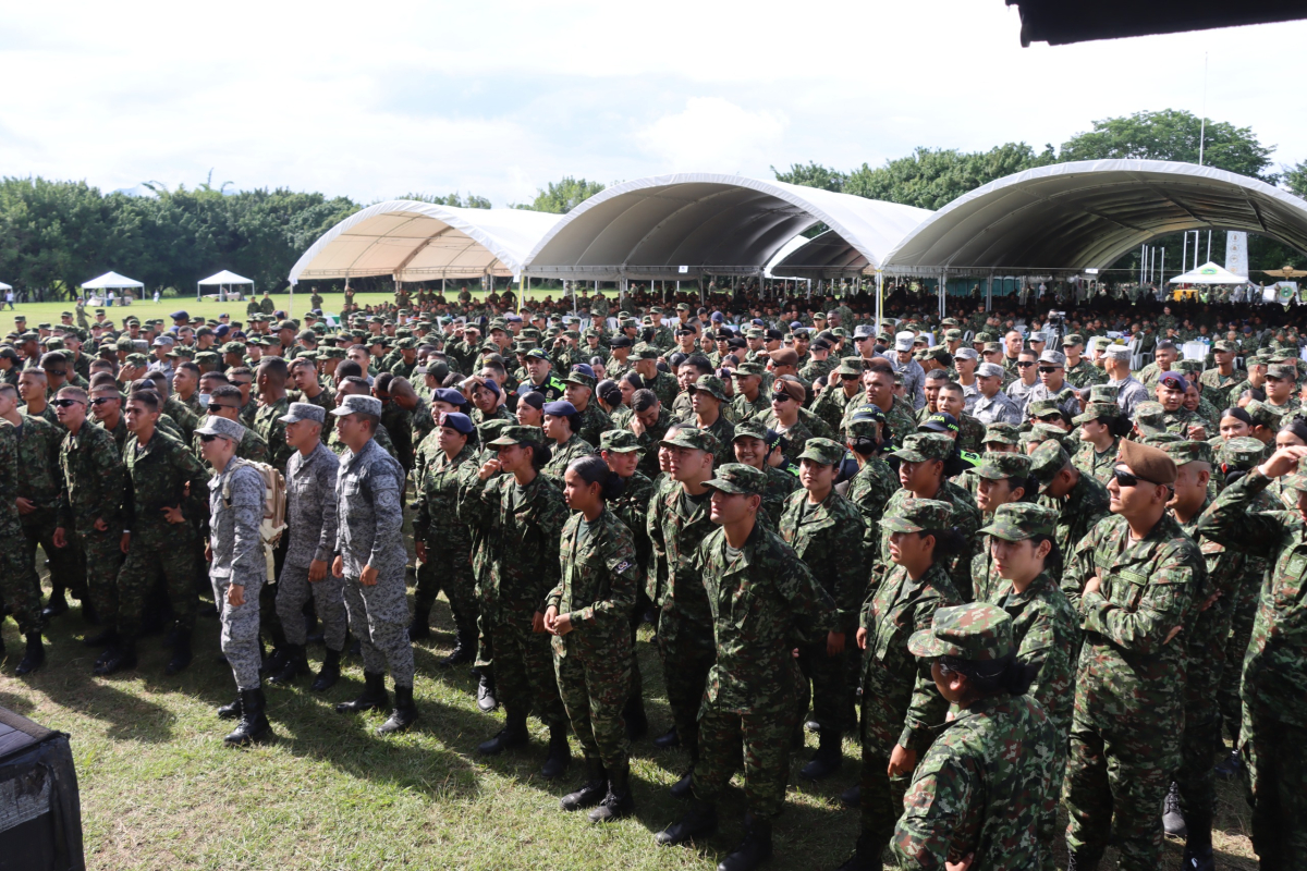 El evento se llevó a cabo en el Centro Nacional de Entrenamiento Militar, donde se congregaron más de tres mil soldados de la Fuerza Aeroespacial Colombiana, el Ejército y la Policía. Esta jornada permitió exaltar la labor de los hombres y mujeres que, con vocación y compromiso, contribuyen a la seguridad del país en todos los rincones del territorio nacional.