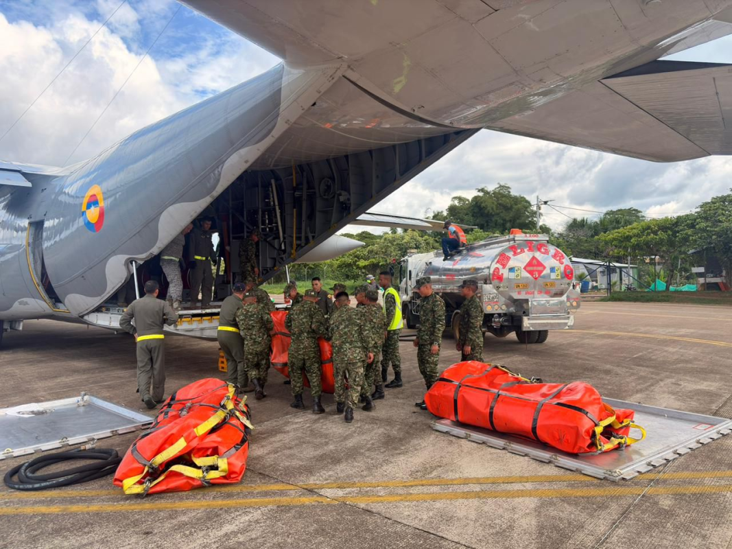 En una operación ininterrumpida desde el 5 de enero, la Fuerza Aeroespacial Colombiana a través de aeronaves C-130 Hércules, completó el traslado de 30.000 galones de ACPM desde el Comando Aéreo de Combate No. 2 en Apiay, Meta, hasta los municipios de Mitú y Puerto Inírida.