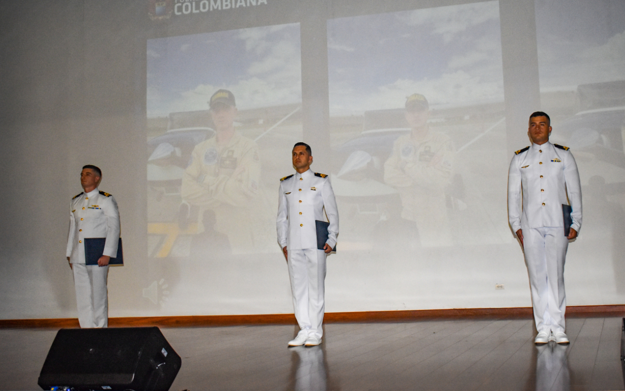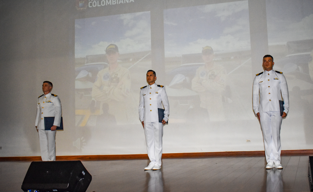 Tres Oficiales de la Armada Nacional culminaron con éxito el Curso de Piloto Básico en la aeronave Cessna 172, desarrollado en la Escuela Internacional de Ala Fija de la Fuerza Aeroespacial Colombiana. Este programa constituye la base en la formación de aviadores militares, al integrar conocimientos técnicos con valores como la disciplina, la toma de decisiones, además del trabajo en equipo, esenciales para el desempeño operacional.