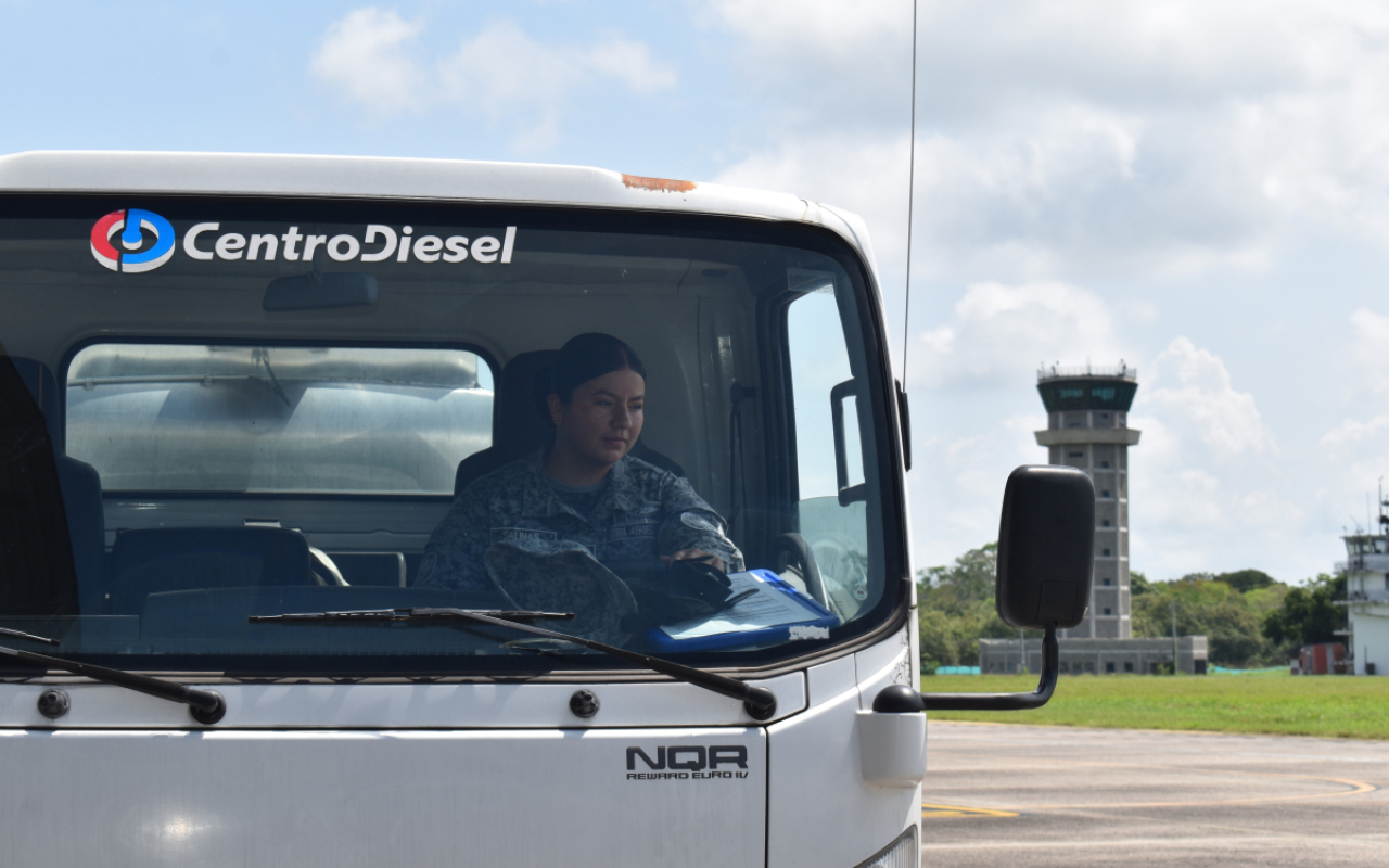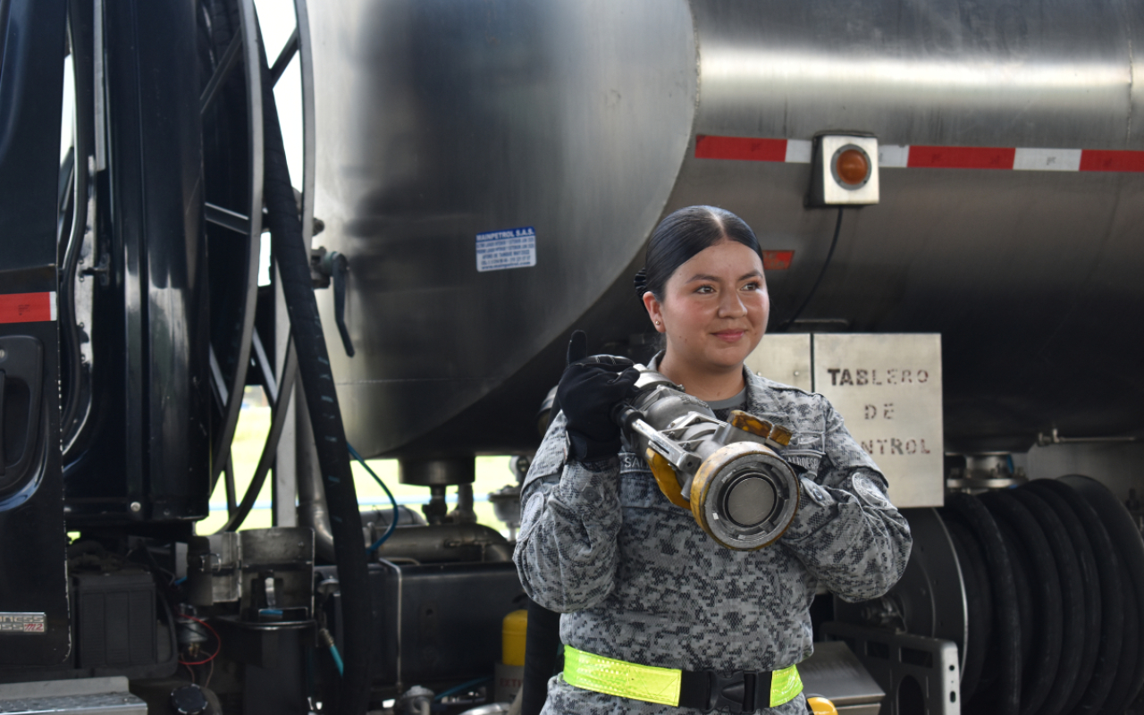 Su día a día transcurre entre pruebas de calidad, medición de tanques, suministro de combustible a aeronaves, entre otras labores complejas, incluso en condiciones de operación en caliente, donde cada segundo cuenta. A esto se suma la conducción de carrotanques de gran capacidad y la responsabilidad de garantizar, durante turnos de 24 horas, que cada operación se ejecute con seguridad y eficiencia. Su labor también incluye tareas administrativas y la gestión de sistemas logísticos institucionales, aportando a la coordinación integral de las operaciones aéreas.