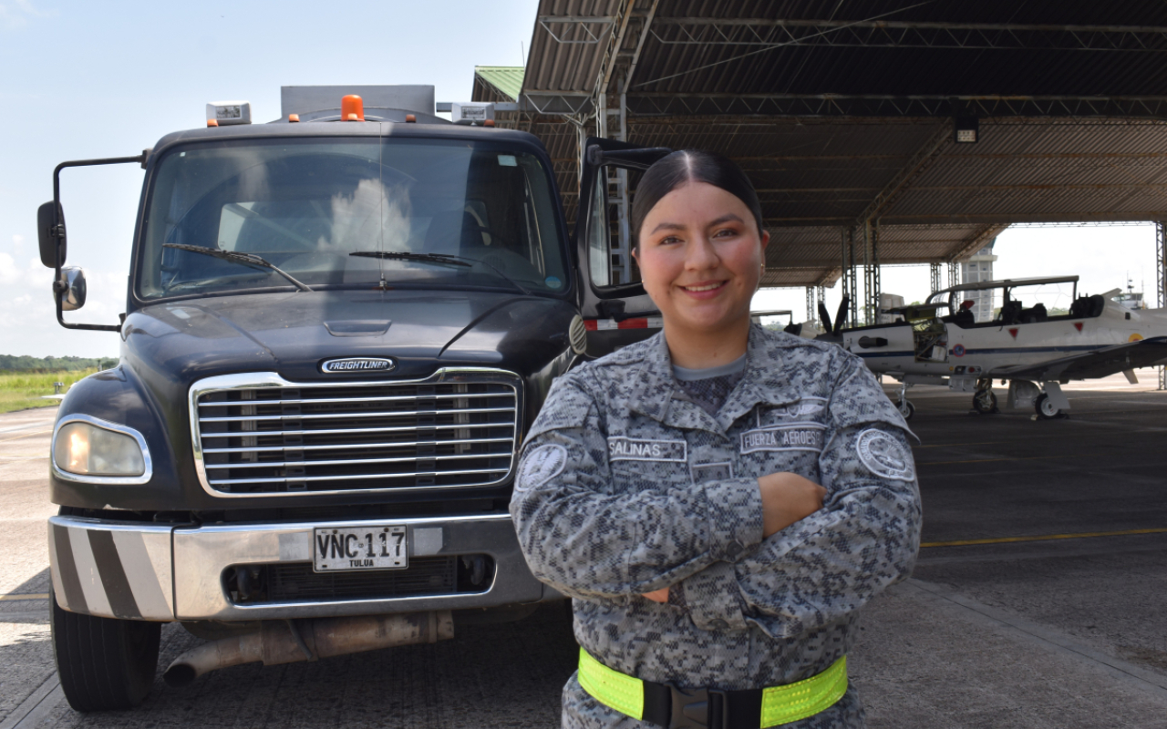 Su historia no solo se construye desde el compromiso, sino desde la decisión de desafiar paradigmas. Nataly eligió desempeñarse como Técnico Operario en Combustibles de Aviación, un rol tradicionalmente ejercido por hombres, asumiéndolo como una oportunidad para demostrar que las profesiones no tienen género. Hoy, como la primera mujer en llevar a cabo esta labor en el Comando Aéreo de Combate No. 1, su nombre se escribe con determinación en un escenario donde el esfuerzo físico, la exigencia operativa y la precisión técnica, son fundamentales para el cumplimiento de la misión.
