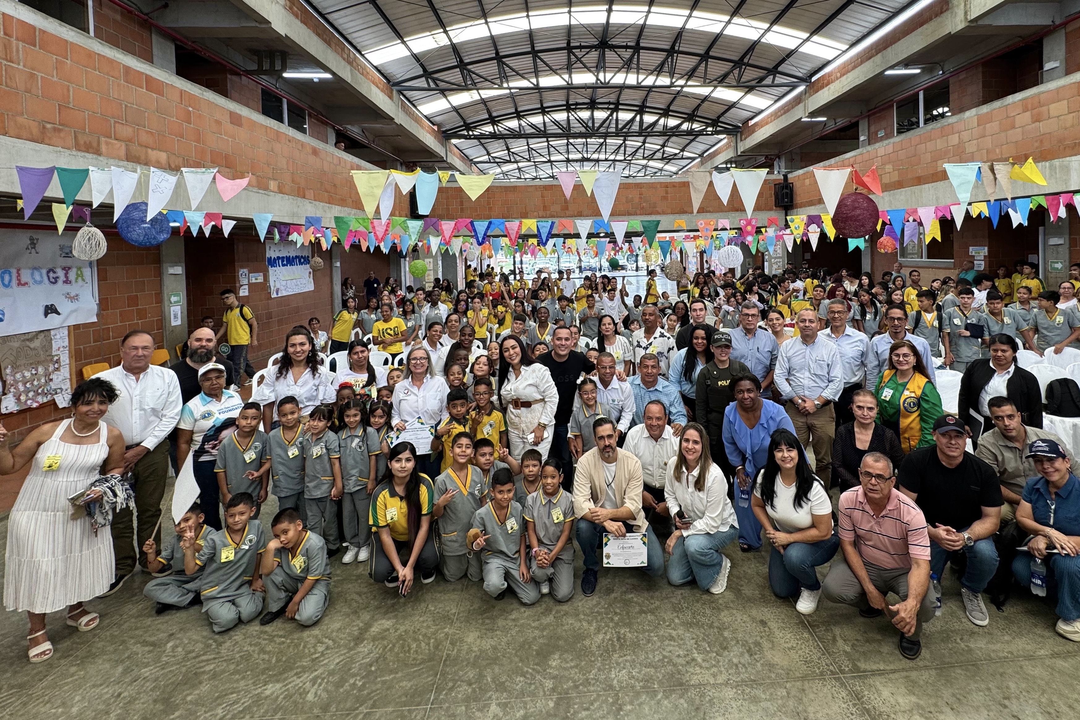 Entre los aportes más significativos se destacó la entrega de 800 libros en buen estado que serán parte de la biblioteca escolar, que también fue entregada en el marco de la Estrategia, así como estanterías, mesas y sillas que contribuirán a generar un lugar más cómodo y atractivo para el aprendizaje; la adecuación del espacio fue complementada con un mural artístico y la reubicación estratégica del mobiliario, además la institución recibió 15 equipos de cómputo que amplían las posibilidades de investigación y fortalecen la innovación educativa.