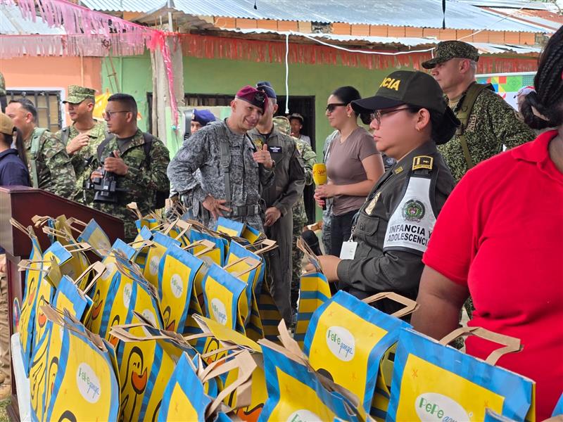 Esta actividad se desarrolló de manera conjunta y coordinada con las Fuerzas Militares, la Policía de Infancia y Adolescencia en articulación con la empresa Pepe Ganga y el medio de comunicación W Radio, permitiendo la entrega de 300 regalos a niños y niñas en condición de vulnerabilidad, llevando un mensaje de esperanza, solidaridad y bienestar a las familias de este sector.
