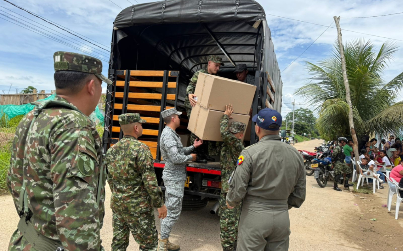 En el marco de la campaña Operación Gratitud, el Comando General de las Fuerzas Militares y el Grupo Aéreo del Amazonas adelantaron una jornada de acercamiento con la población del barrio Manguaré del municipio de Leticia, Amazonas, orientada a fortalecer los lazos de confianza y cercanía con la comunidad, especialmente durante la temporada decembrina.