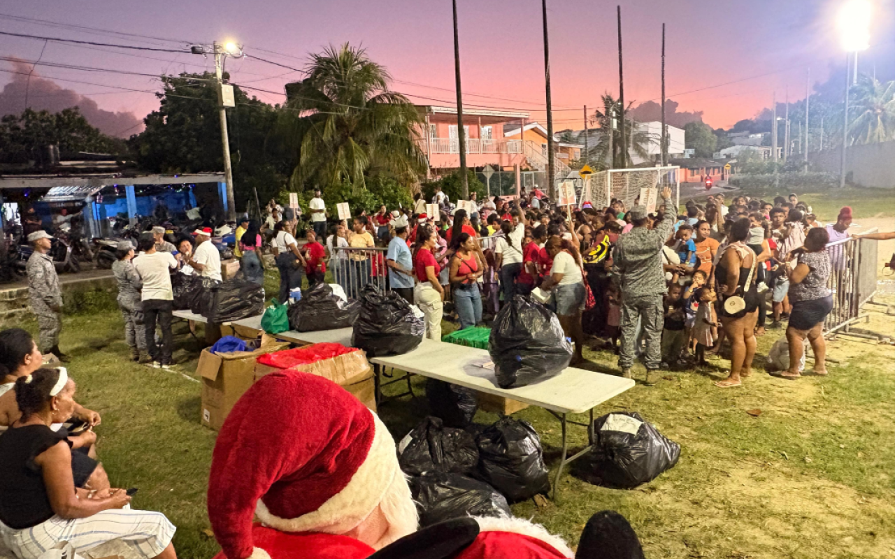 A través del Grupo Aéreo del Caribe, la FAC brindó acompañamiento interinstitucional a la Gobernación del Archipiélago, apoyando la entrega de 423 regalos a niños y niñas de los sectores de Cartagena Alegre y Black Dog, llevando un mensaje de esperanza, unión y bienestar en estas festividades.