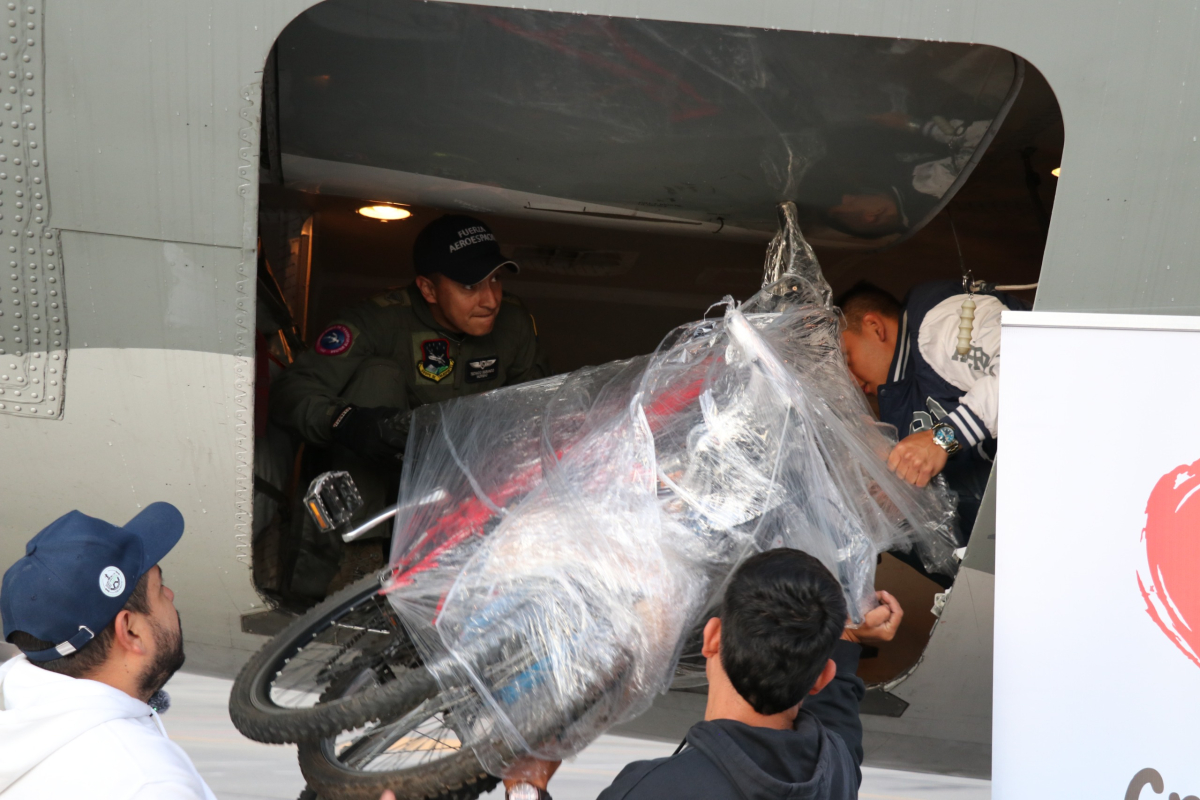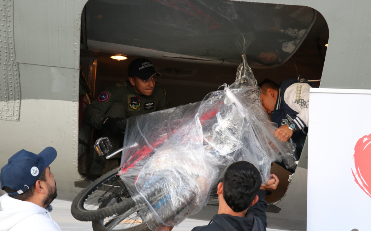 Se trata de varias docenas de bicicletas entre nuevas y recuperadas que iniciaron su travesía desde el municipio de Fusagasugá, donde fueron preparadas para esta especial entrega, se transportaron vía terrestre hasta el Comando Aéreo de Transporte Militar CATAM en Bogotá, luego despegaron vía aérea haciendo una parada técnica en el Comando Aéreo de Combate No. 2, CACOM 2, en Villavicencio y finalmente aterrizaron en la capital de Vaupés.