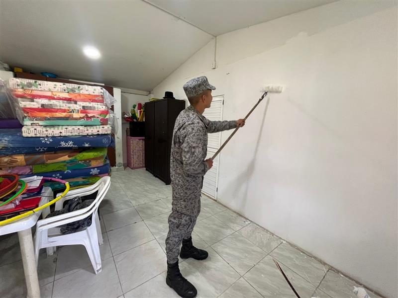 La Fuerza Aeroespacial Colombiana llevó a cabo una importante intervención en el Centro de Desarrollo Infantil (CDI) La Esmeralda, dentro del marco de la iniciativa “Plan Corazón Amigo”. En esta jornada, el personal militar se encargó de renovar la pintura de los salones, el mobiliario y las zonas exteriores, lo que permitió embellecer y mejorar las condiciones del espacio educativo.