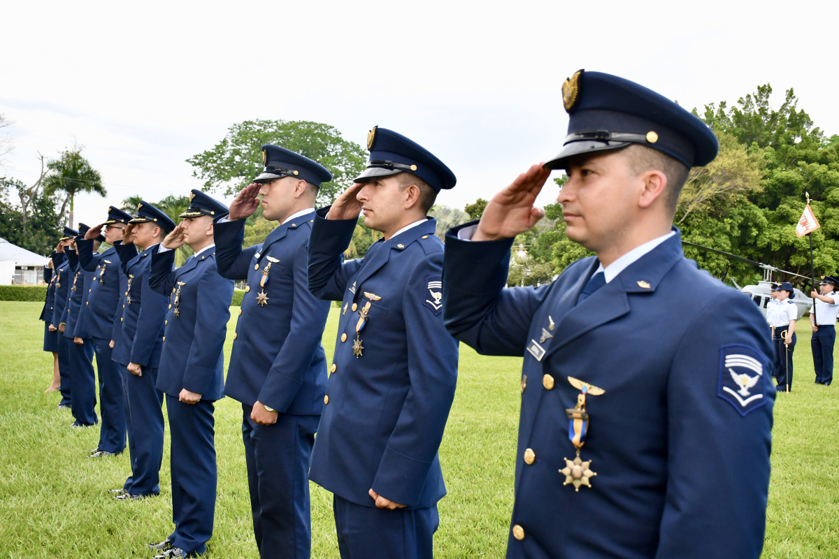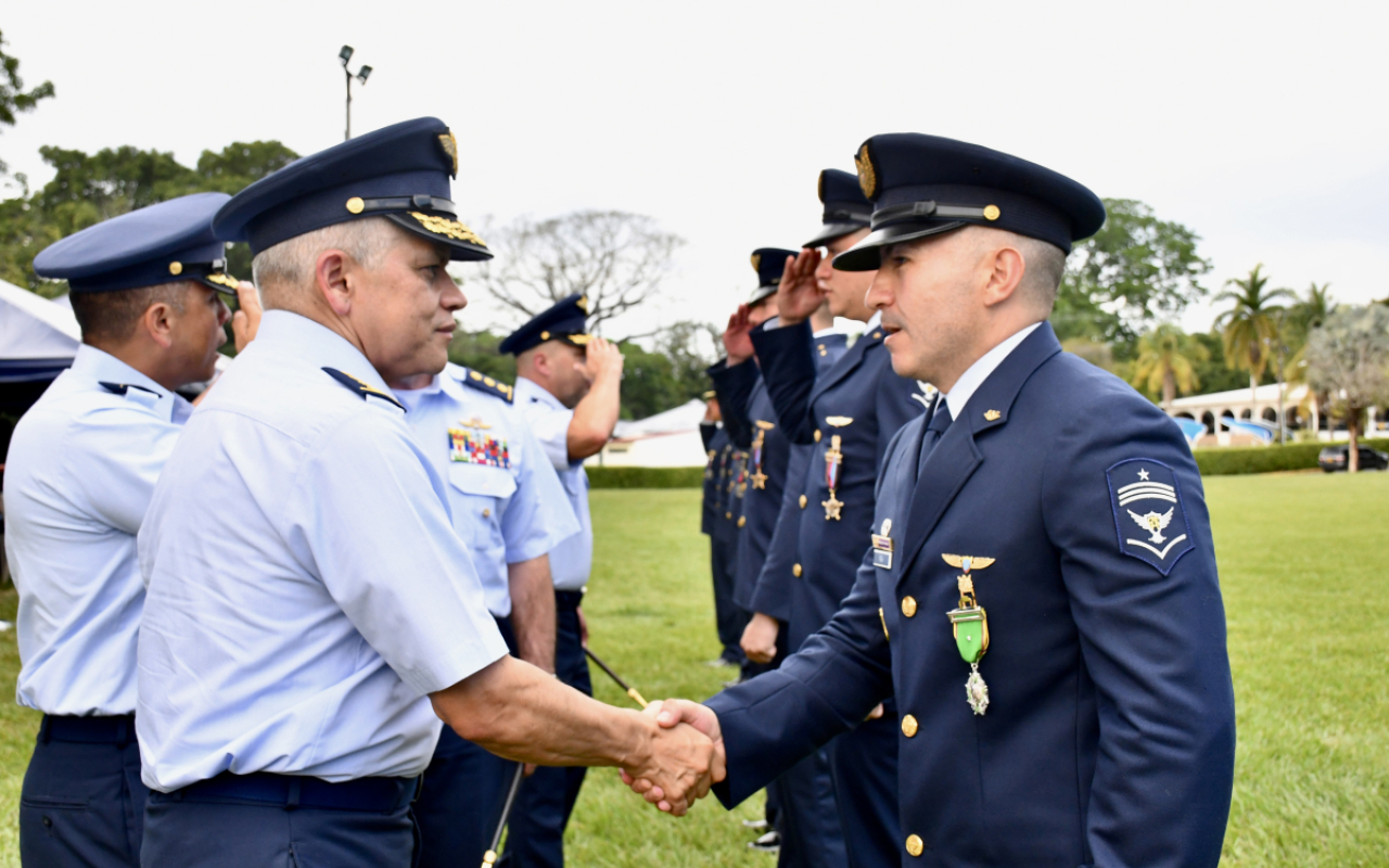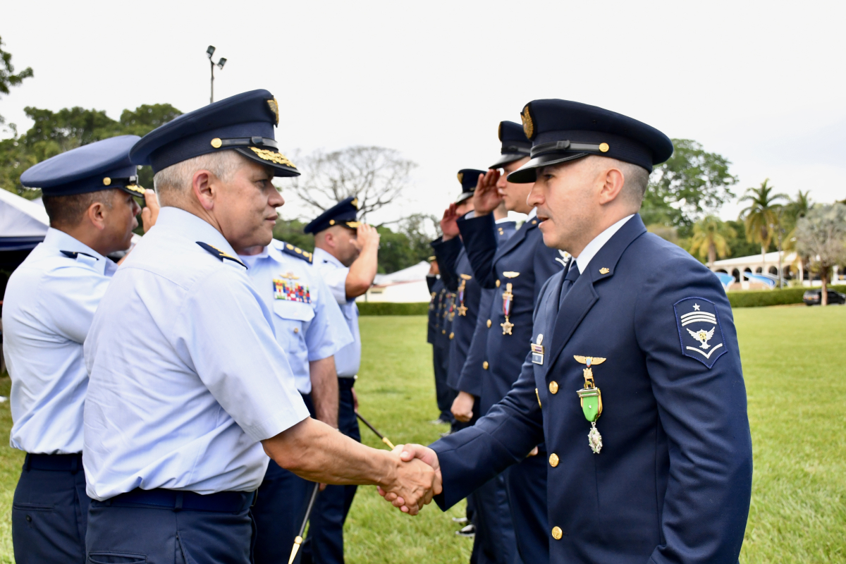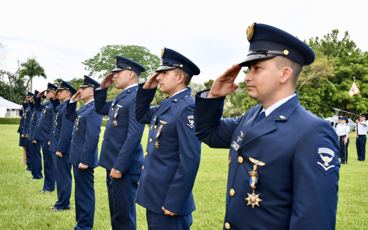 Durante el acto protocolario se impusieron medallas de tiempo de servicio a un grupo de hombres y mujeres cuya permanencia ha sido determinante en la consolidación de procesos técnicos, operacionales y doctrinales, más allá del reconocimiento, representó un homenaje a la experiencia que sostiene la operación aérea diaria y la transmisión de conocimiento a nuevas generaciones de aviadores militares.