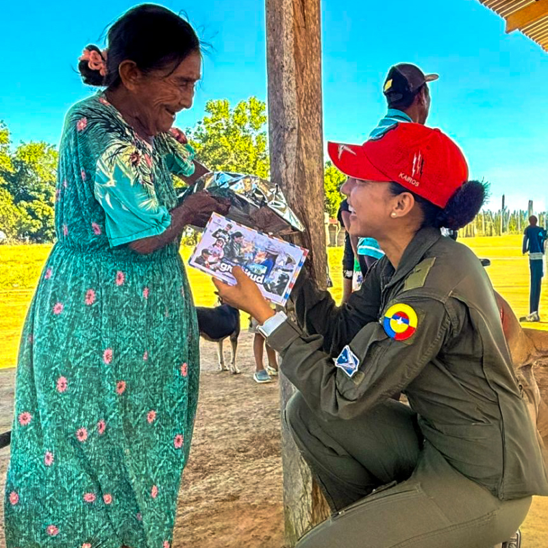 En el marco de la “Operación Gratitud”, las capacidades de la Fuerza Aeroespacial Colombiana transportaron felicidad, llegando a la población de Puerto Carreño y Cumaribo, Vichada, con actividades de entrega de regalos que fortalecieron los lazos de confianza y cercanía con la comunidad durante la temporada decembrina.