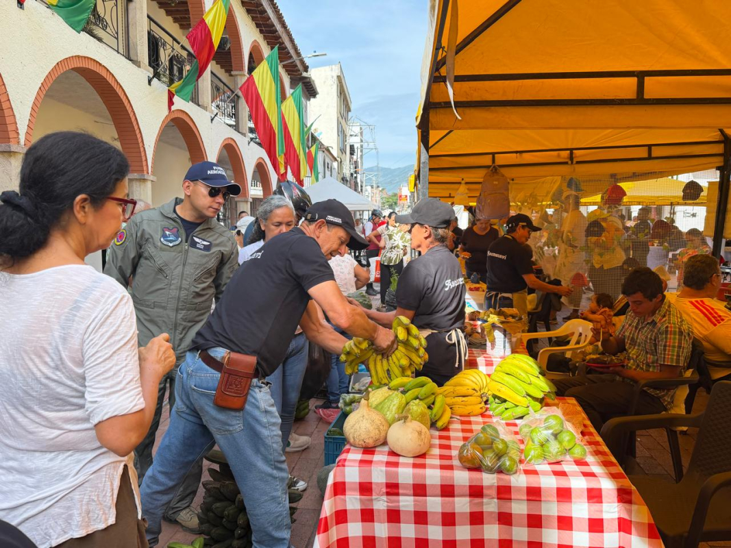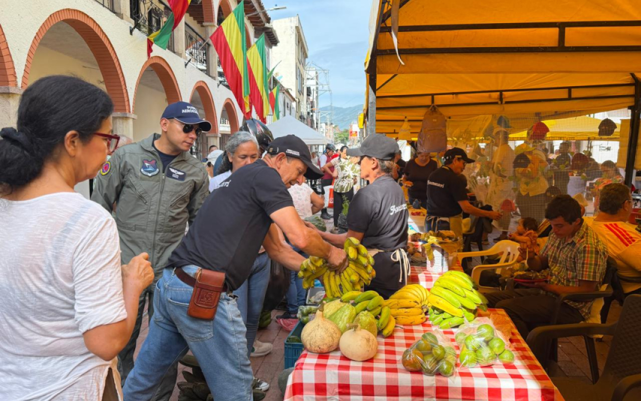 Con el propósito de impulsar el sector agrícola y visibilizar a los pequeños productores del país, la Fuerza Aeroespacial Colombiana se sumó a la rueda de emprendimiento realizada en el parque principal de Villeta, Cundinamarca.