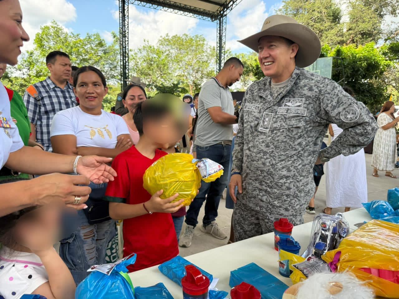Alrededor de 54 beneficiados dejó esta actividad que tenía como objetivo llevar felicidad a esta comunidad, cercana a la Base Aérea de Apiay, para celebrar la Navidad en compañía de los hombres y mujeres que les brindan seguridad constante tanto con patrullajes aéreos como terrestres.
