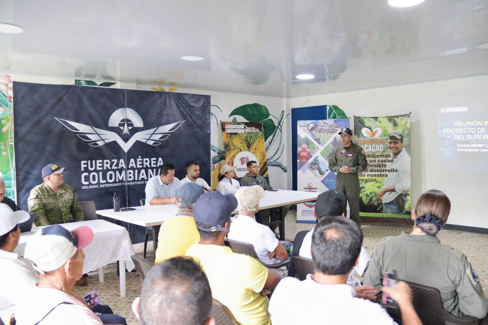 Con el propósito de fortalecer las capacidades productivas de los cacaoteros y aportar al desarrollo agrícola sostenible del municipio de Solano, el Comando Aéreo de Combate No. 6, CACOM 6, de la Fuerza Aeroespacial Colombiana ha articulado esfuerzos con instituciones aliadas para consolidar estrategias que impulsen el Proyecto Integral del Suroriente Colombiano.