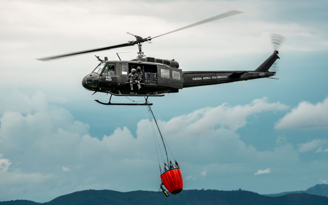 En escenarios de gestión del riesgo, la capacidad aérea ha demostrado su contundencia mediante el empleo del sistema Bambi Bucket, con el cual durante 2025 efectuó la descarga de más de 22.000 galones de agua en misiones de extinción de incendios, contribuyendo de manera significativa a la mitigación de emergencias ambientales y a la protección de la fauna y la flora; a ello se suman las misiones de búsqueda y rescate, que reafirman la capacidad de reacción inmediata y el compromiso permanente con la preservación de la vida.