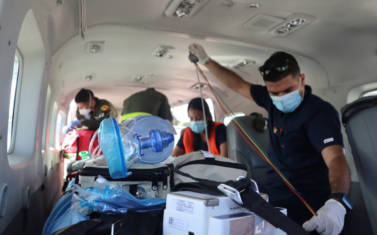 Durante el desarrollo de la misión, fue asegurado el cuidado integral del paciente, manteniendo su estabilidad clínica mediante el uso adecuado de los equipos médicos disponibles a bordo.