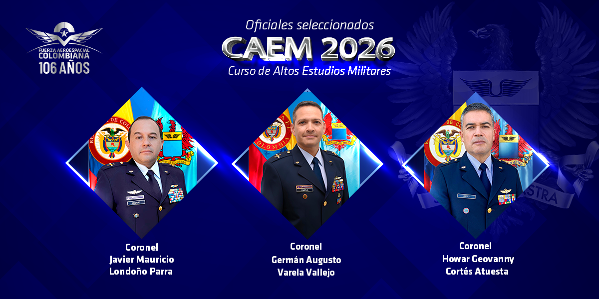 Tres Oficiales FAC seleccionados para adelantar el Curso de Altos Estudios Militares