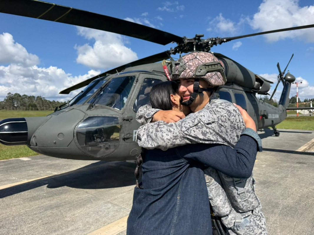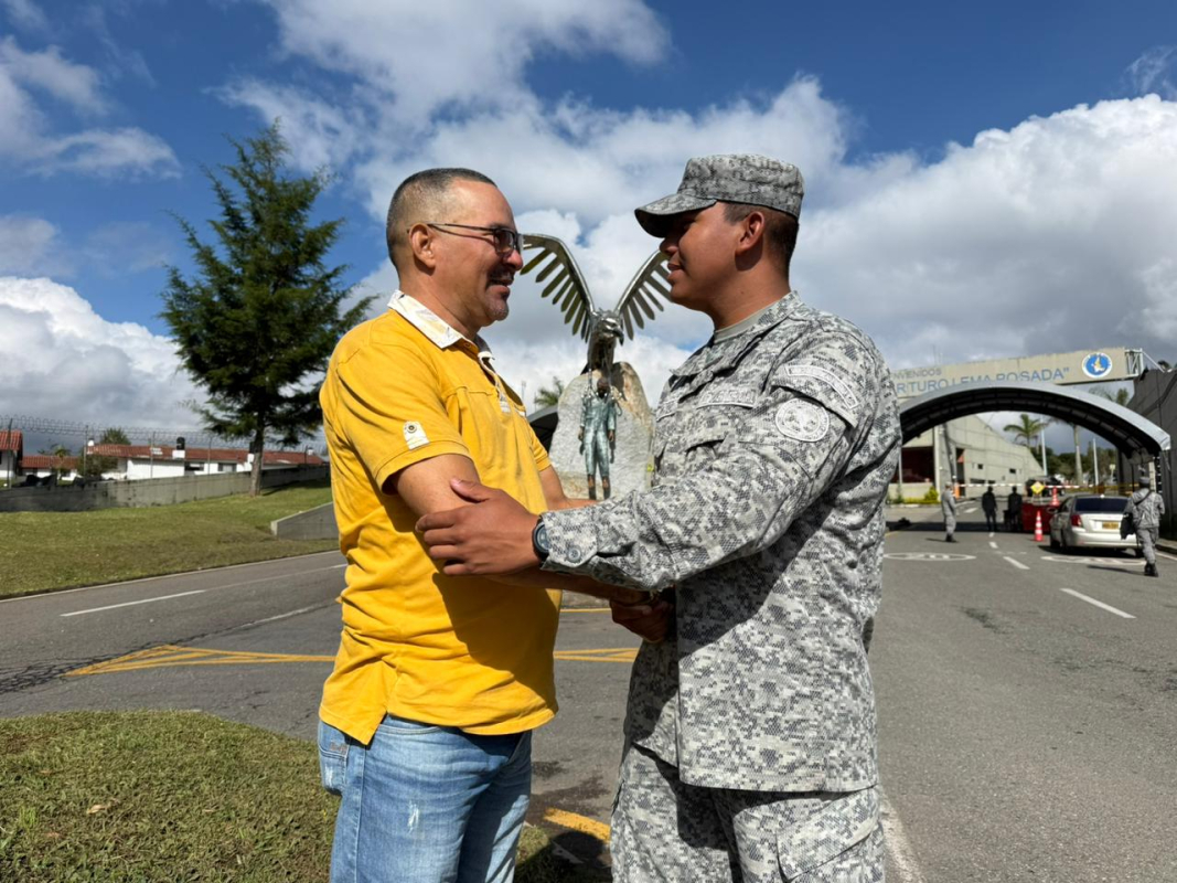 El reencuentro estuvo lleno de emoción, sonrisas y lágrimas de alegría mientras los jóvenes soldados se sorprendían al ver de repente a sus seres queridos, un momento que les permitió sentir de cerca el cariño y el apoyo de su familia y que se convirtió en un recordatorio del amor que los acompaña aun cuando la distancia y el deber los mantienen lejos de casa, fortaleciendo sus corazones, llenándolos de gratitud y motivándolos a continuar con dedicación su servicio en la Fuerza Aeroespacial Colombiana con la certeza de que su esfuerzo es valorado y que no están solos en su misión.