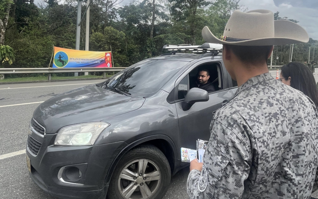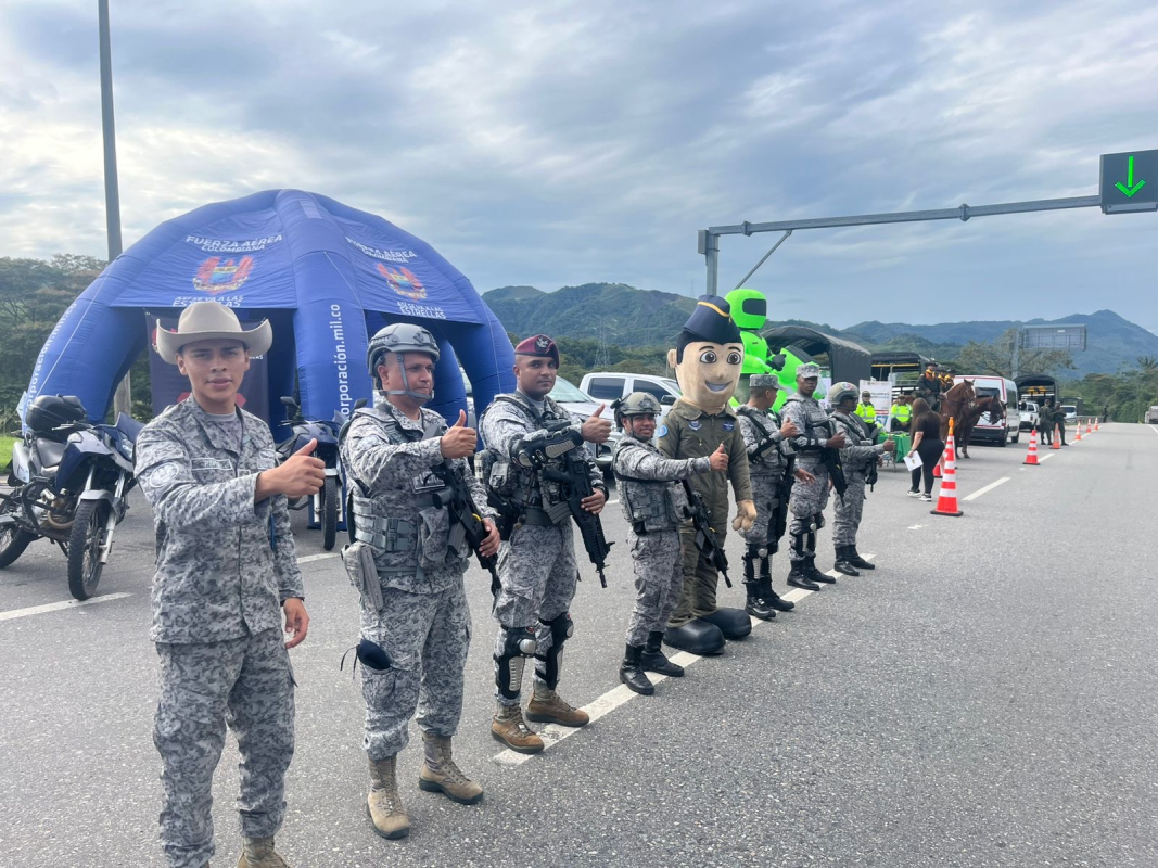 En la entrada a la ‘Puerta del llano’ Villavicencio, se realizó el lanzamiento de la campaña ‘Viaje Seguro’ en estas fiestas decembrinas, donde los turistas que estaban arribando a la capital del Meta tuvieron la oportunidad de interactuar con militares y policías, teniendo un recibimiento caluroso, amenizado con música llanera y bailarines de joropo.