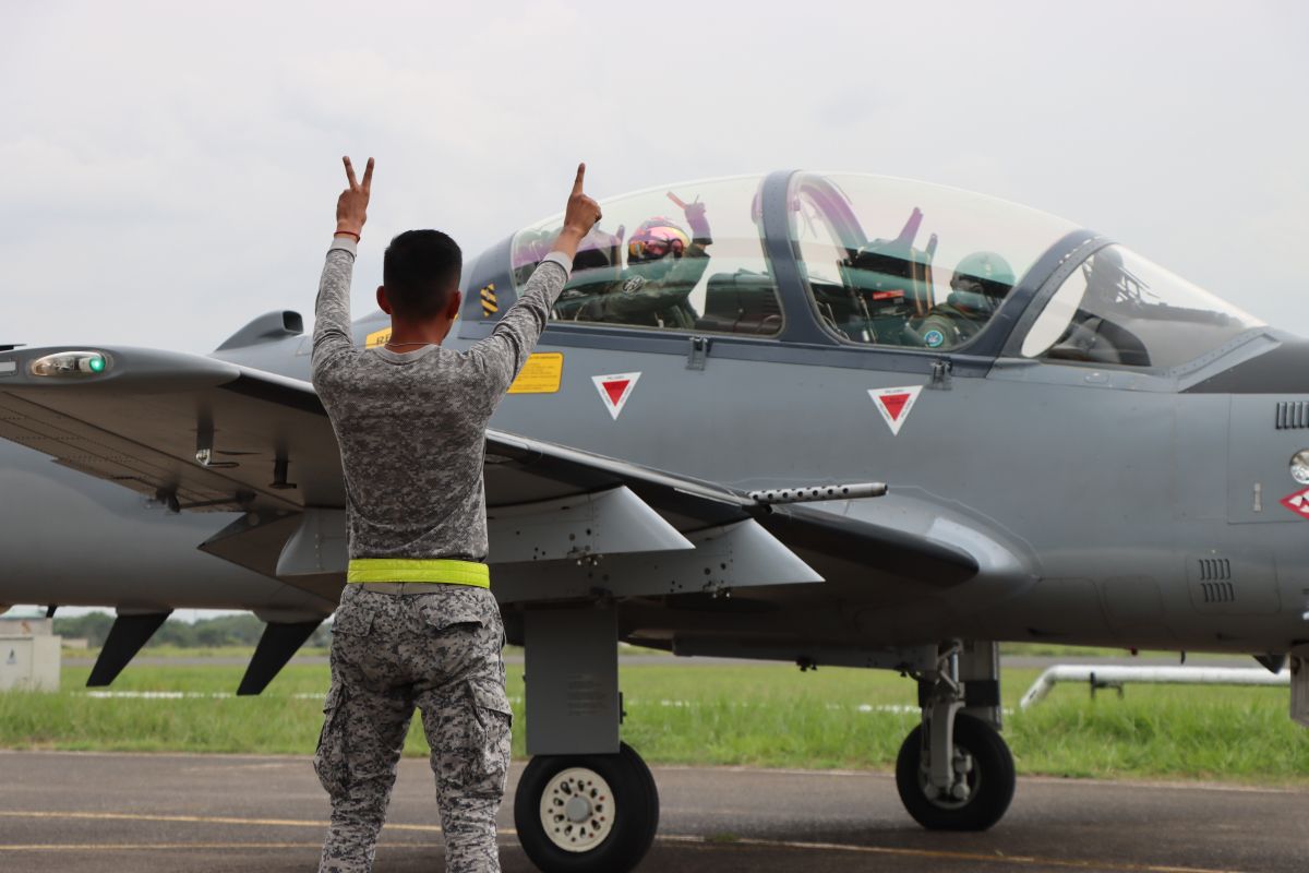 Santiago Peña, José Julián Pérez y Carlos Leiva, Alféreces pertenecientes al curso 99 de oficiales de la FAC, adelantan su proceso de formación como pilotos militares de ala fija en el Comando Aéreo de Combate No. 2, alcanzando un peldaño importante en su preparación durante los últimos días, su primer vuelo solo a bordo del poderoso T-27 Tucano. Este momento representa no solo un logro académico y personal, sino también la confirmación de que el esfuerzo constante y la disciplina dan sus frutos.