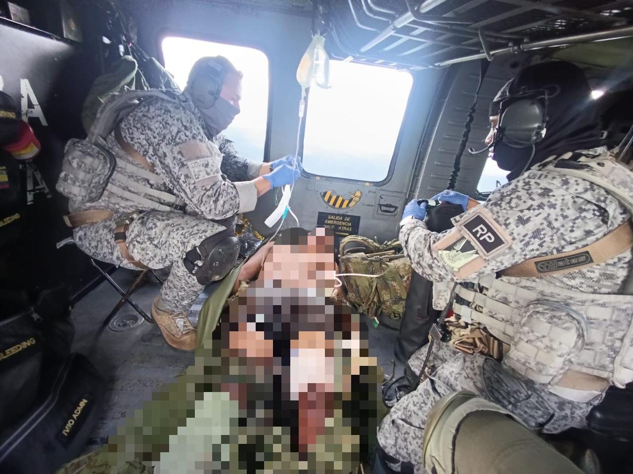 Tras recibir el requerimiento y en coordinación con el Centro de Recuperación de Personal, CENRP y el Ejército Nacional de Colombia, las tripulaciones del Comando Aéreo de Combate No. 5, CACOM 5, despegaron desde Rionegro a bordo de un helicóptero UH-60 Black Hawk hacia el punto de extracción. Al aterrizar, uniformados del Ejército de Colombia y del Servicio Nacional de Fronteras Senafront, de Panamá, entregaron al soldado en condición estable a los rescatistas de la FAC, luego de brindarle los primeros auxilios. De inmediato, el militar fue trasladado al municipio de Carepa y posteriormente remitido a la Clínica Panamericana, donde continúa recibiendo atención médica especializada.