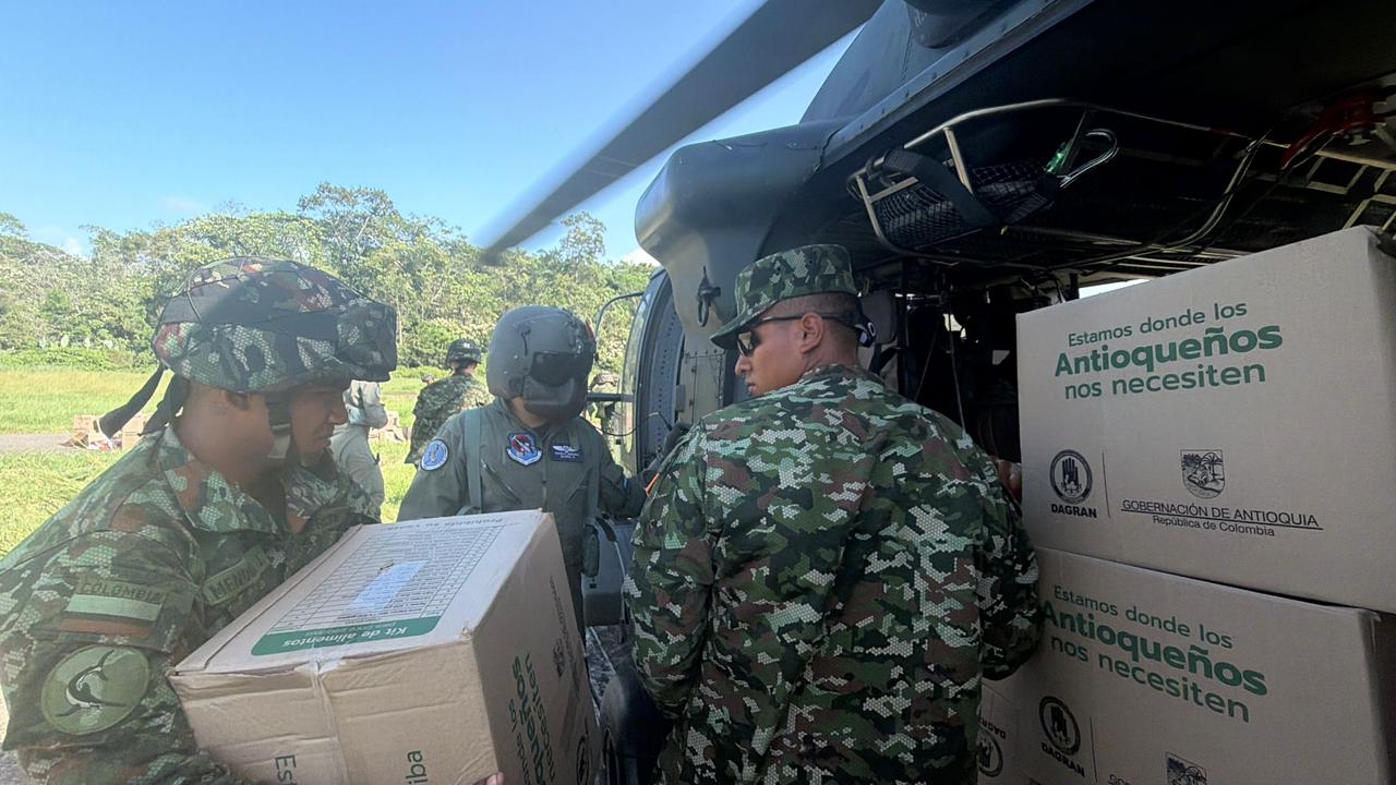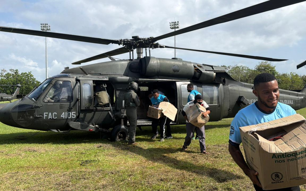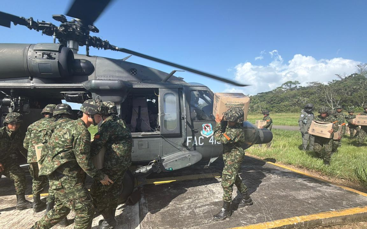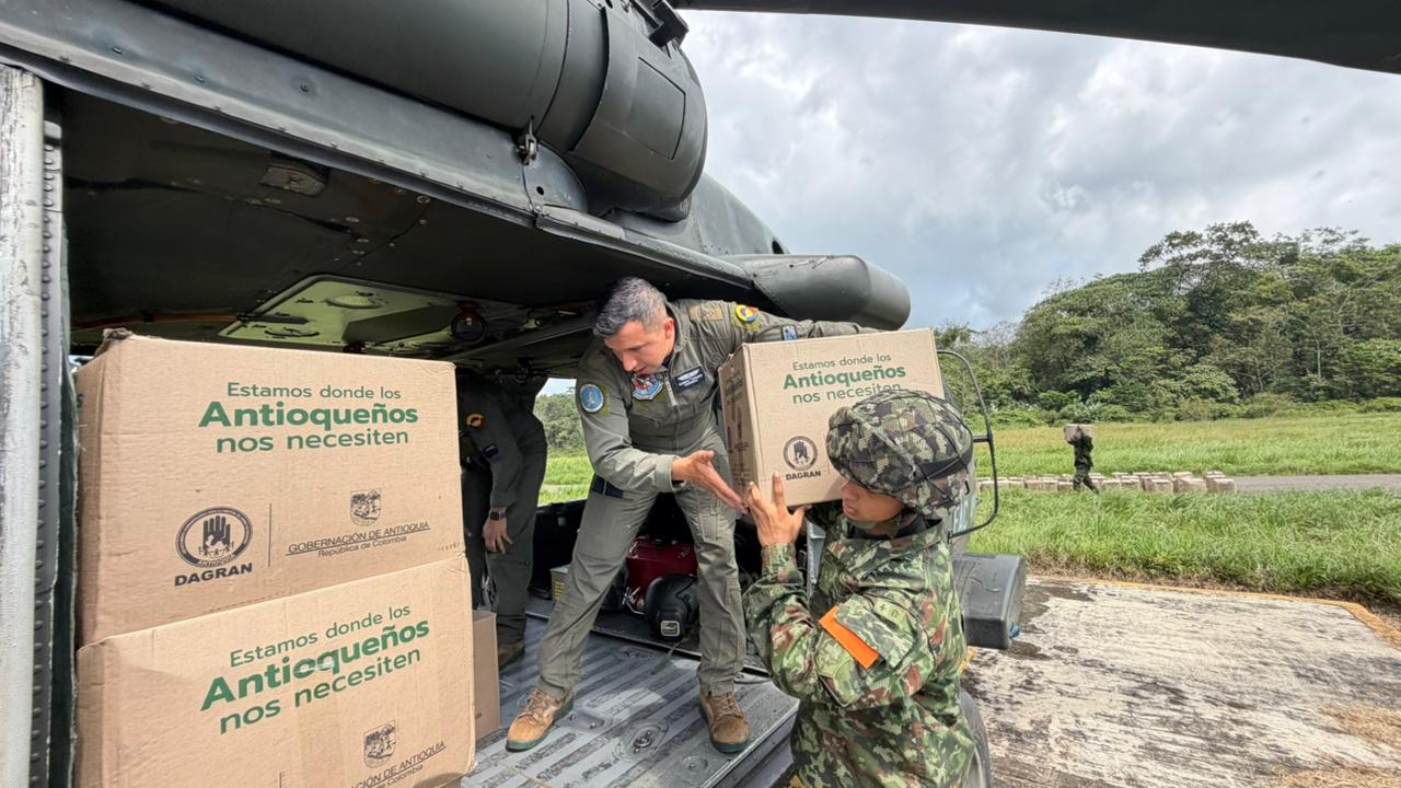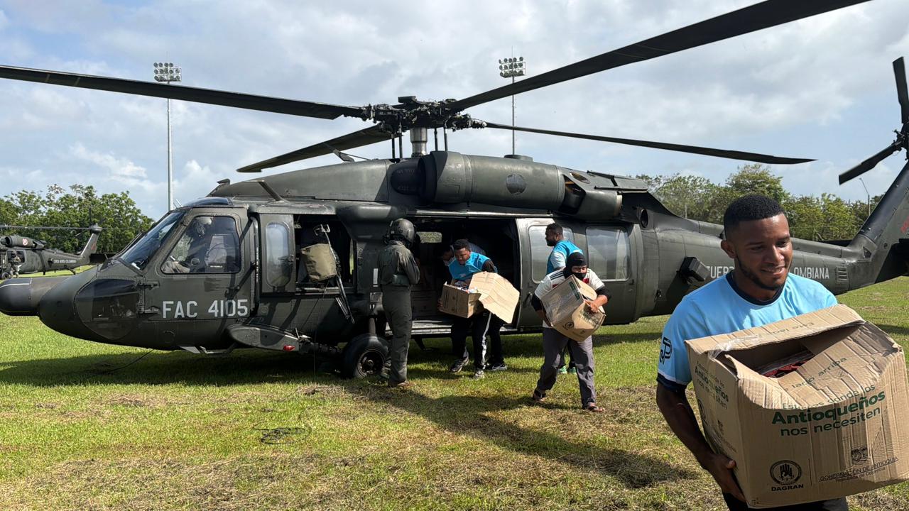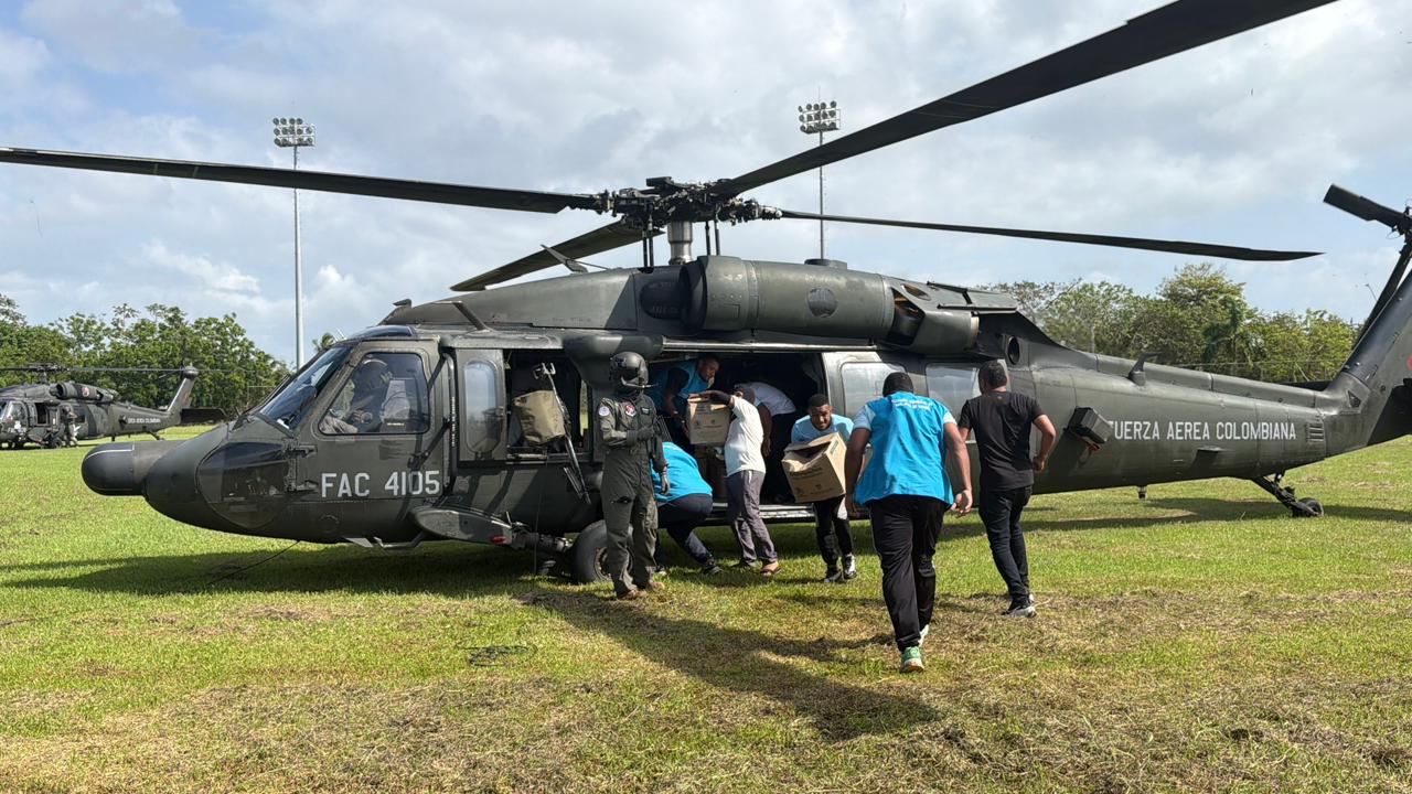 Como parte de esta operación, se desplegaron tres aeronaves tipo UH-60, que permitieron el transporte aéreo de más de 500 ayudas humanitarias compuestas por alimentos y elementos de aseo, que suman de un total de 12 toneladas. Estas ayudas fueron recibidas en los municipios de Necoclí y Carepa, Antioquia, y posteriormente trasladadas hasta el municipio de San Juan de Urabá, facilitando la llegada de la asistencia a sectores con limitaciones de acceso terrestre.