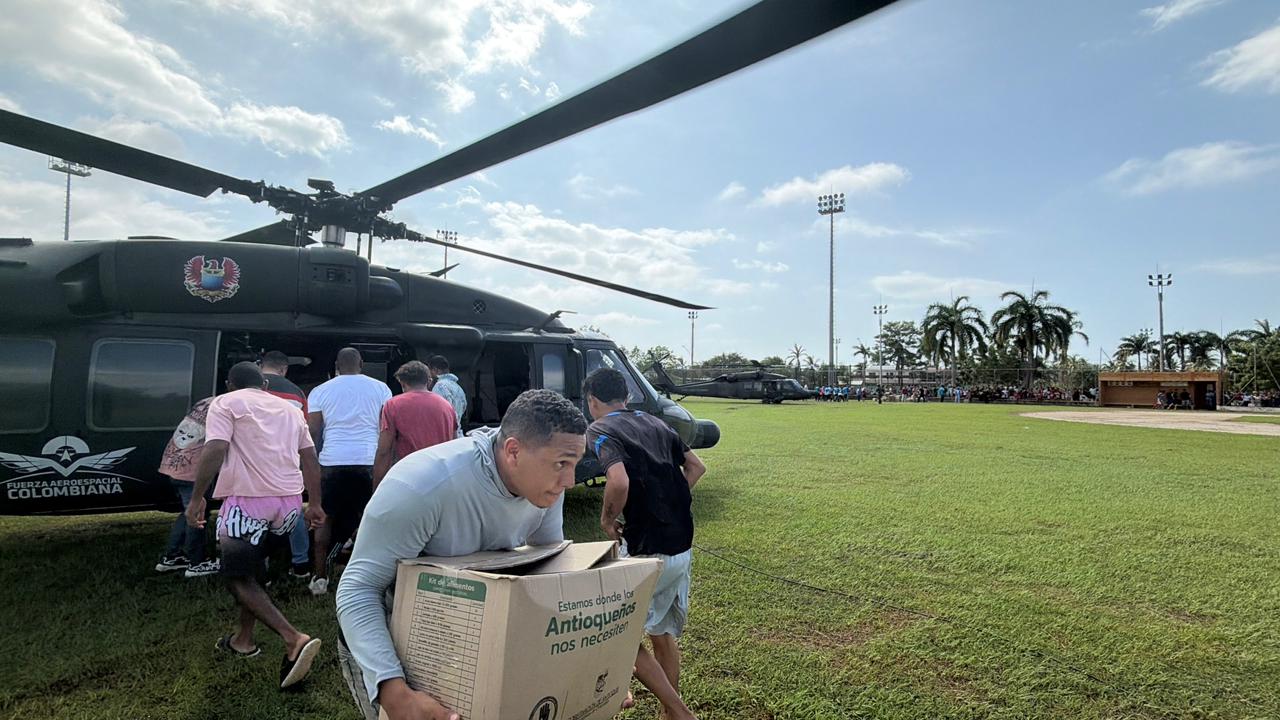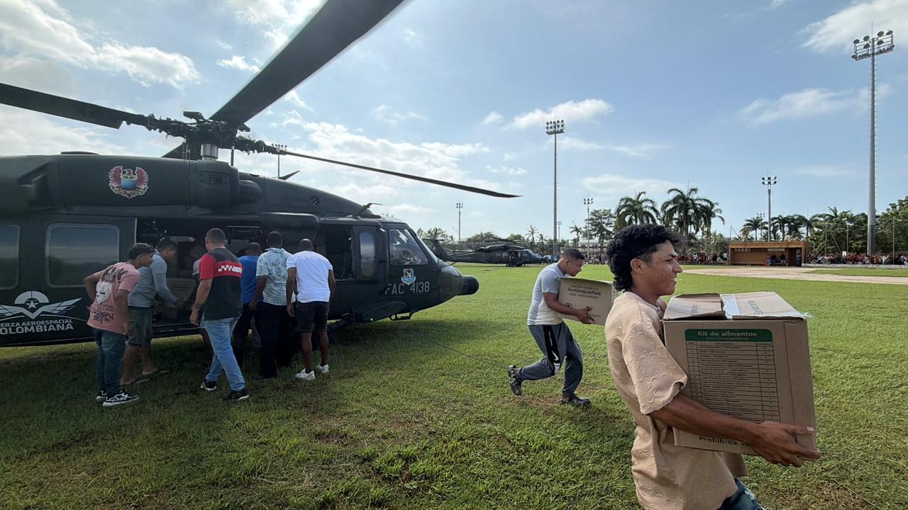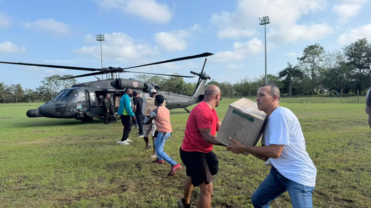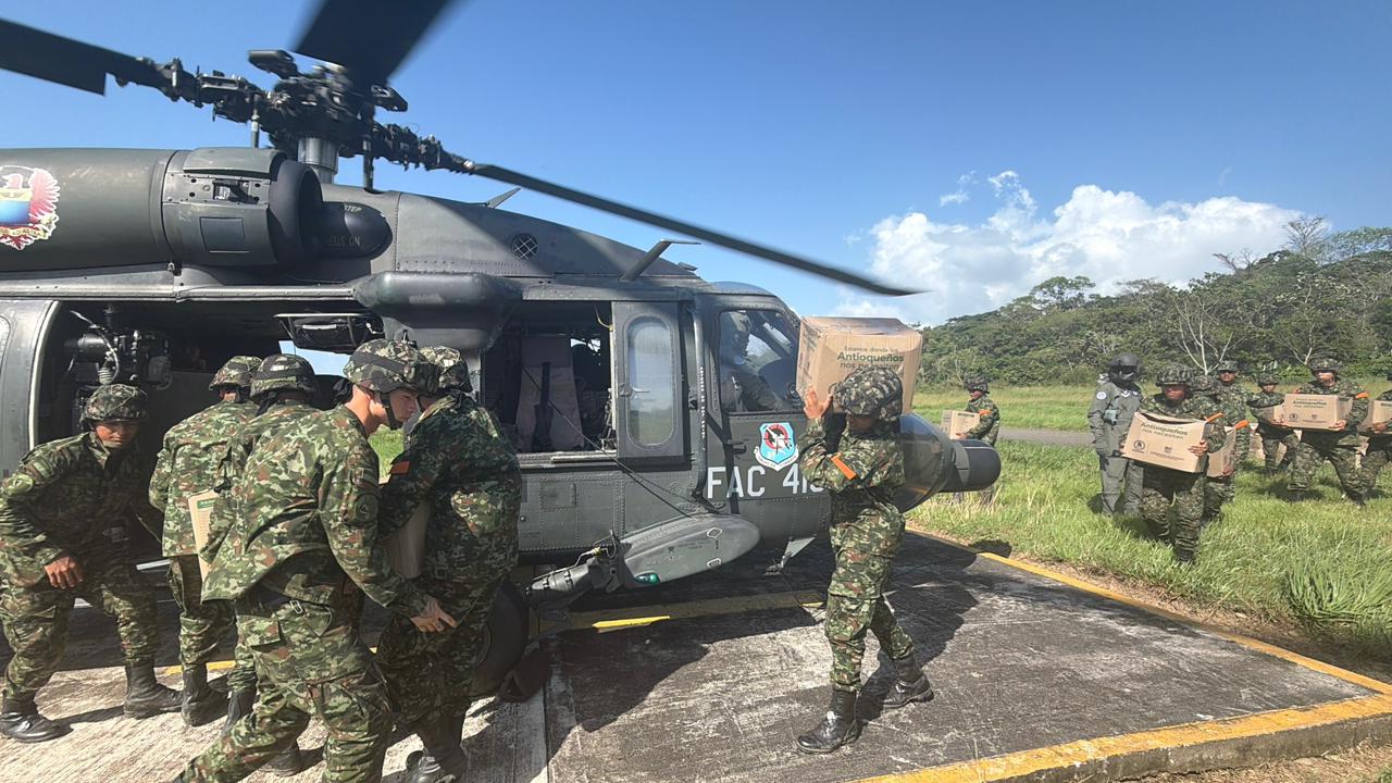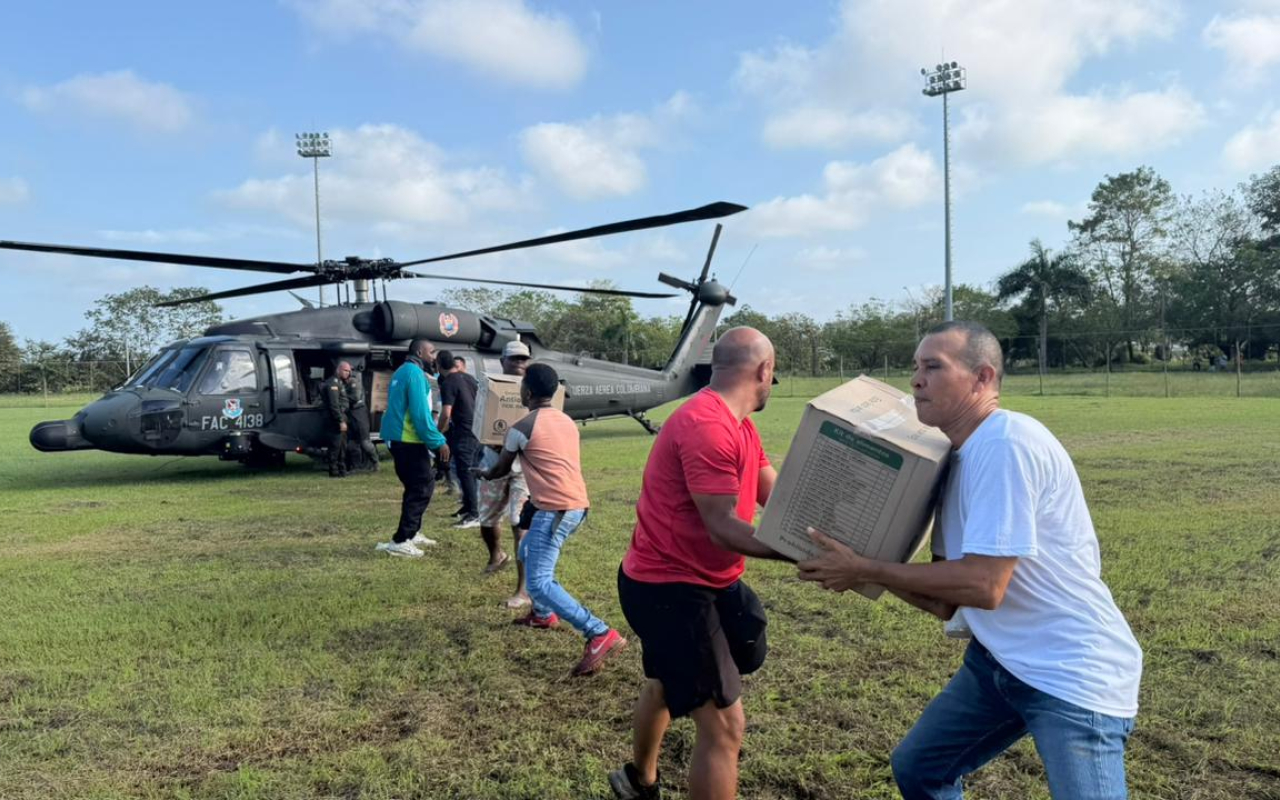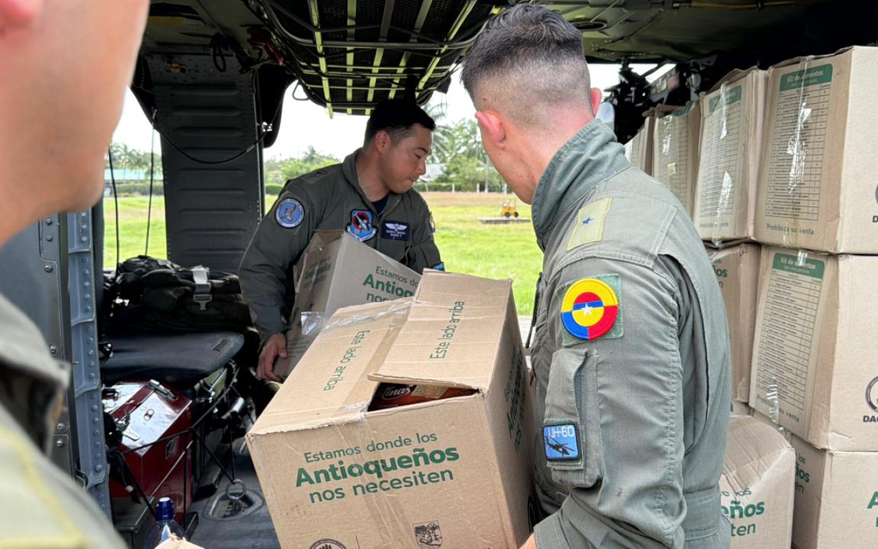 Como parte de esta operación, se desplegaron tres aeronaves tipo UH-60, que permitieron el transporte aéreo de más de 500 ayudas humanitarias compuestas por alimentos y elementos de aseo, que suman de un total de 12 toneladas. Estas ayudas fueron recibidas en los municipios de Necoclí y Carepa, Antioquia, y posteriormente trasladadas hasta el municipio de San Juan de Urabá, facilitando la llegada de la asistencia a sectores con limitaciones de acceso terrestre.