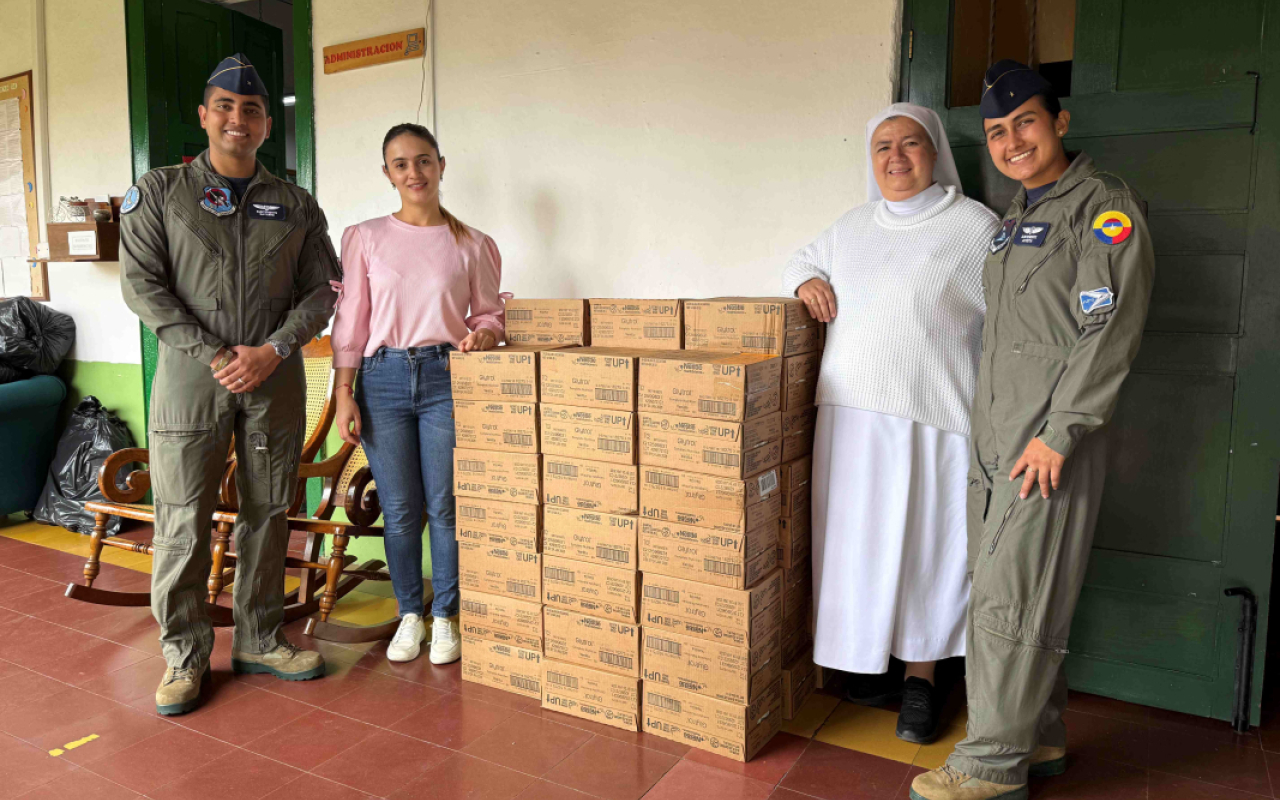 La Fuerza Aeroespacial Colombiana, a través del Comando Aéreo de Combate No. 5 y en articulación con la Corporación Organización El Minuto de Dios, llevó a cabo una entrega de ayudas humanitarias en el Oriente antioqueño que reafirma el compromiso institucional con el bienestar de las comunidades más vulnerables.