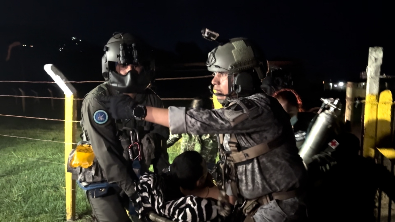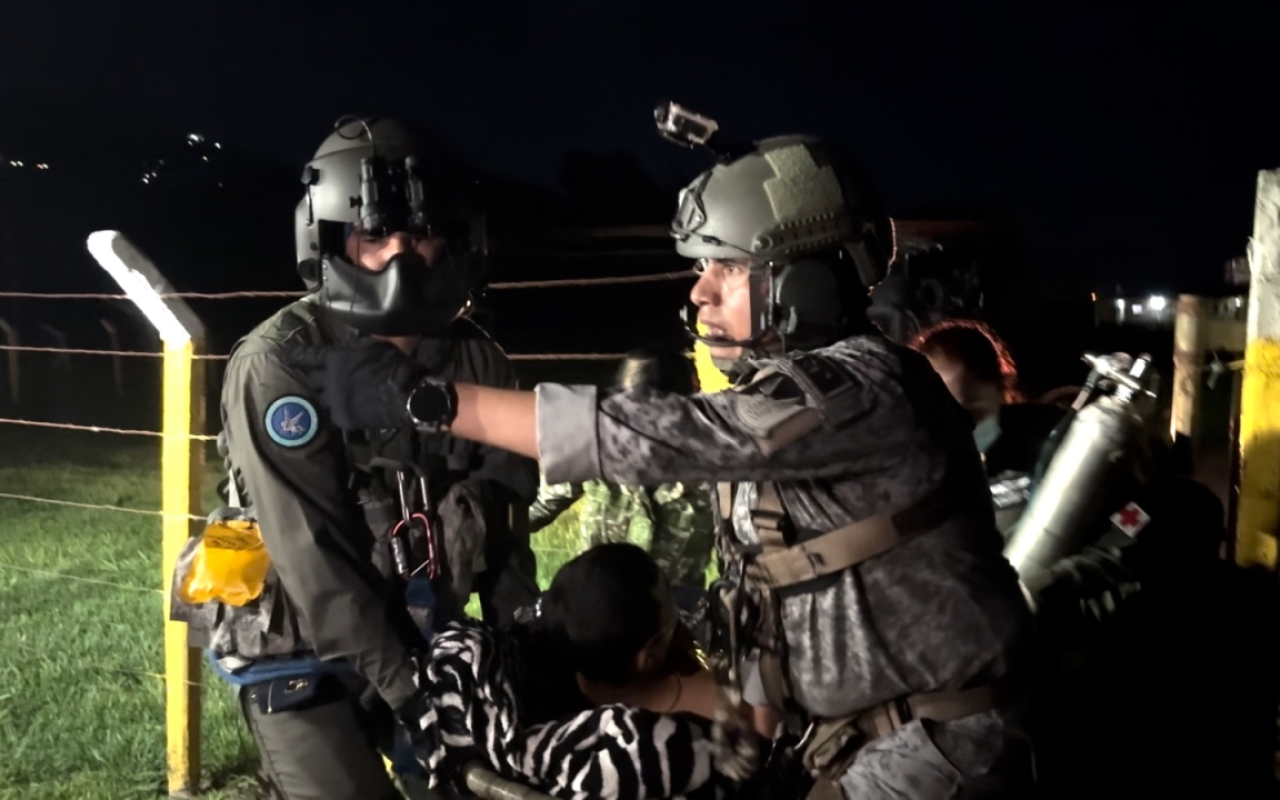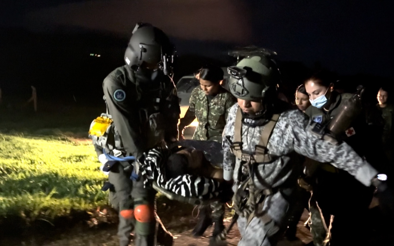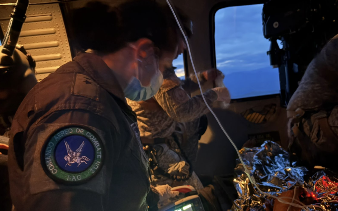 La tripulación del helicóptero UH-60 Blackhawk, en su configuración ‘Ángel’ del Comando Aéreo de Combate No. 2 de su Fuerza Aeroespacial Colombiana, reaccionó oportunamente para realizar la evacuación aeromédica de un campesino que se encontraba en zona rural de Támara, Casanare, donde fue impactado por un artefacto explosivo improvisado, motivo por el cual tenía que ser movilizado con urgencia a Yopal.