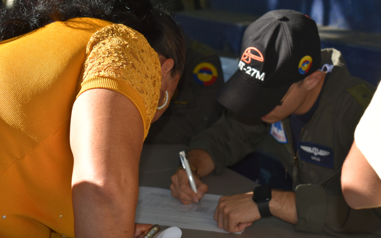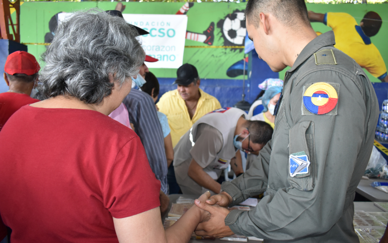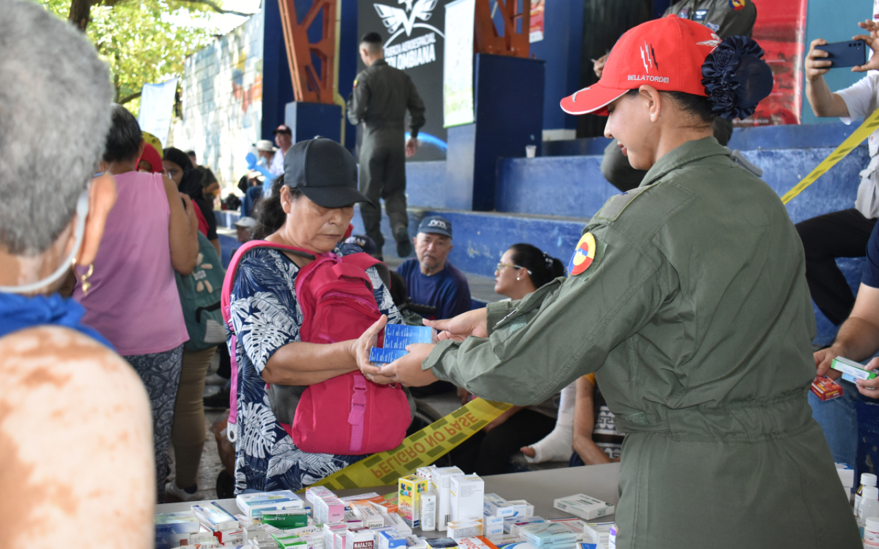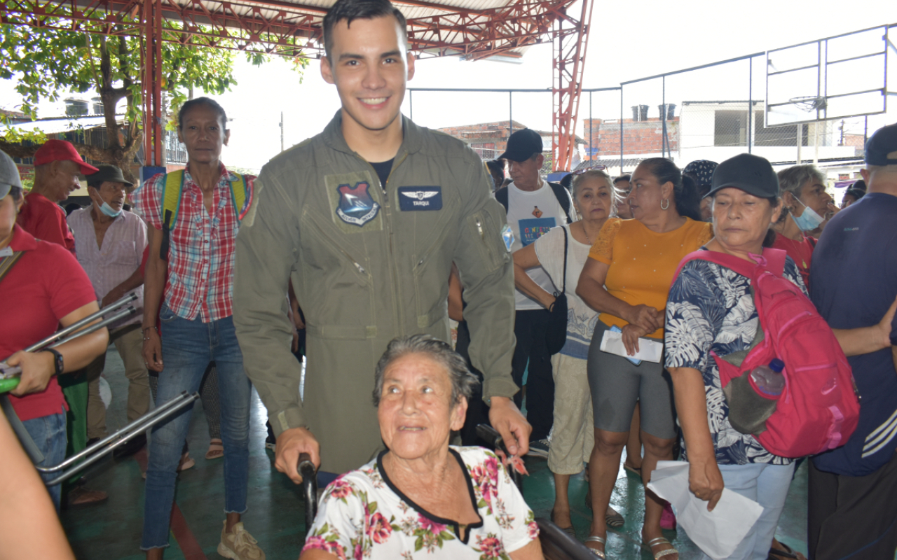 En una jornada marcada por la solidaridad y el servicio, Oficiales y Suboficiales del Comando Aéreo de Combate No. 1 de su Fuerza Aeroespacial Colombiana, llegaron hasta el polideportivo del barrio Las Ferias, en La Dorada, Caldas, para desarrollar una Actividad de Asistencia Médica y Humanitaria que impactó positivamente a cientos de habitantes; una misión de apoyo que renovó la esperanza de numerosas familias que, gracias a esta iniciativa, accedieron a servicios especializados.